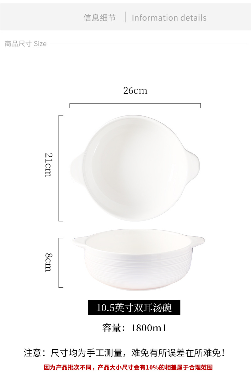 10.5寸汉斯双耳白色汤碗+大汤勺
