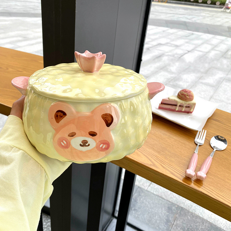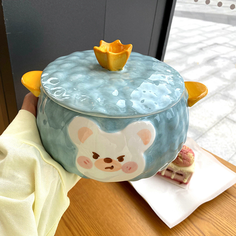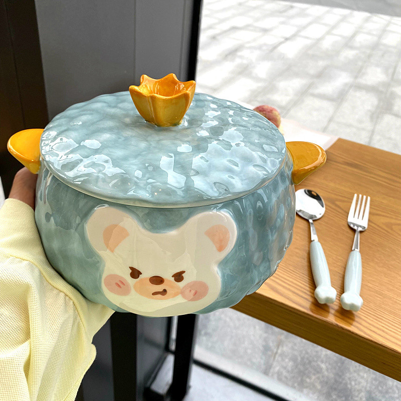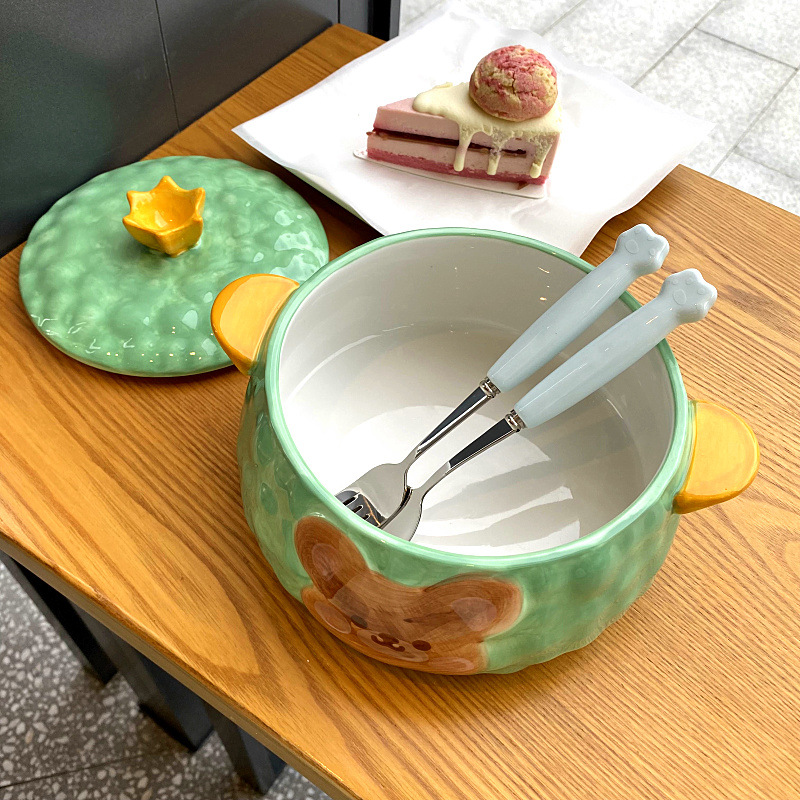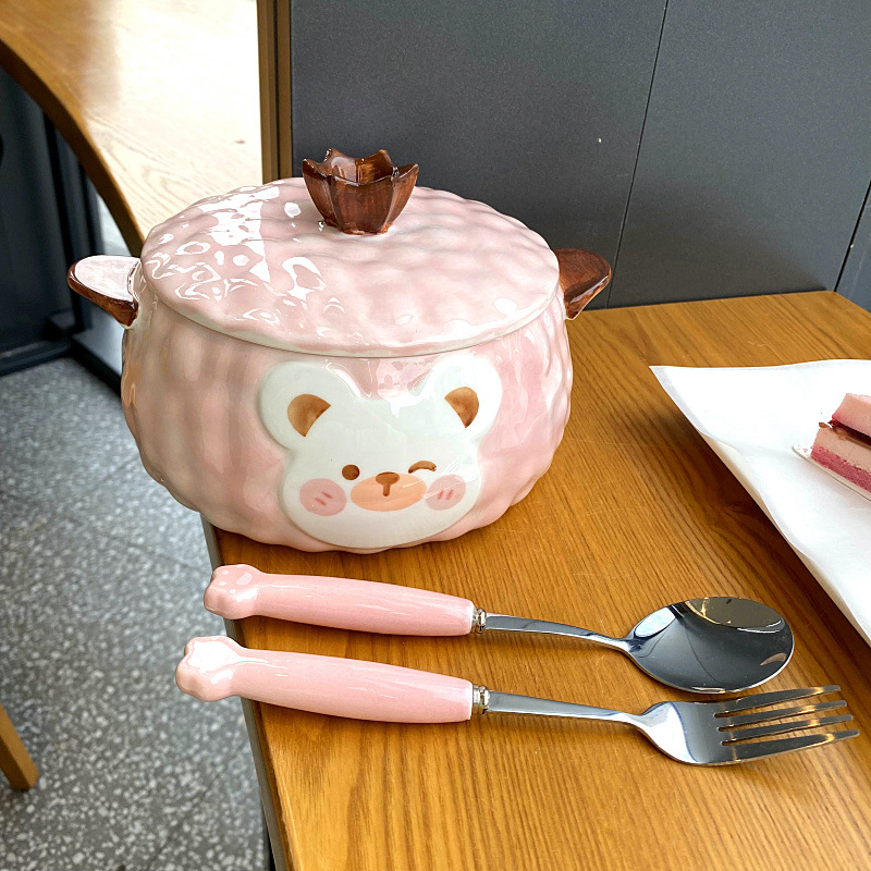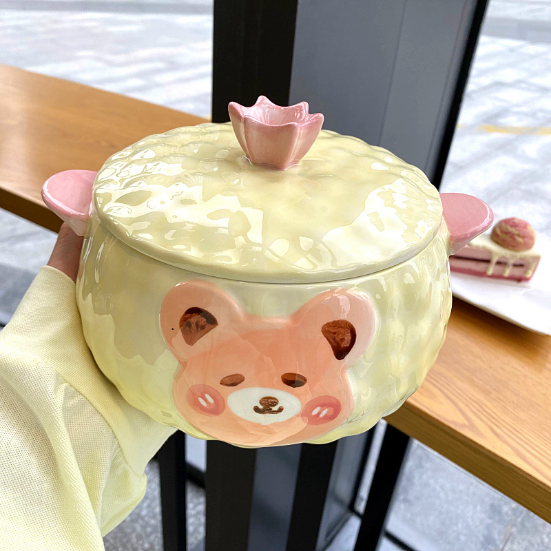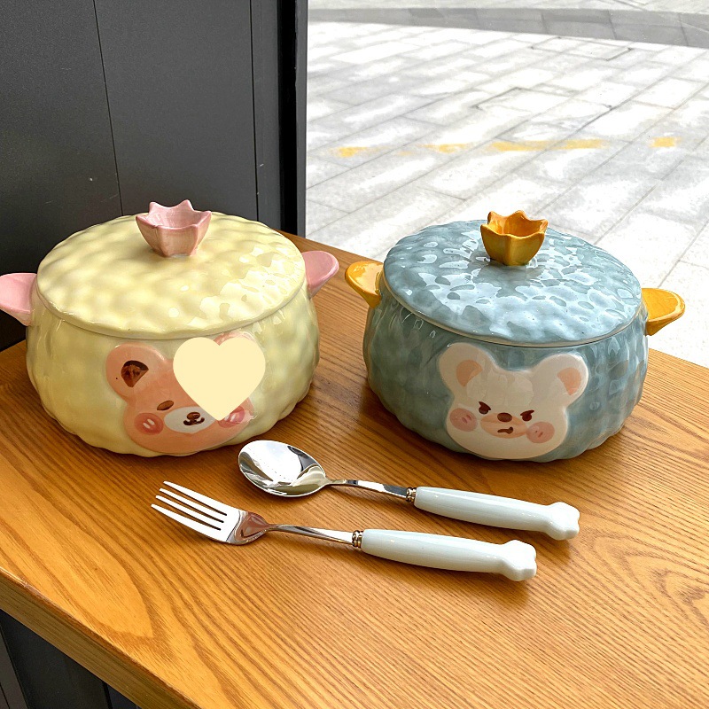 双耳陶瓷熊熊泡面碗可爱带盖创意少女心
