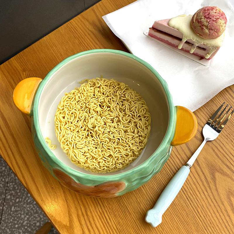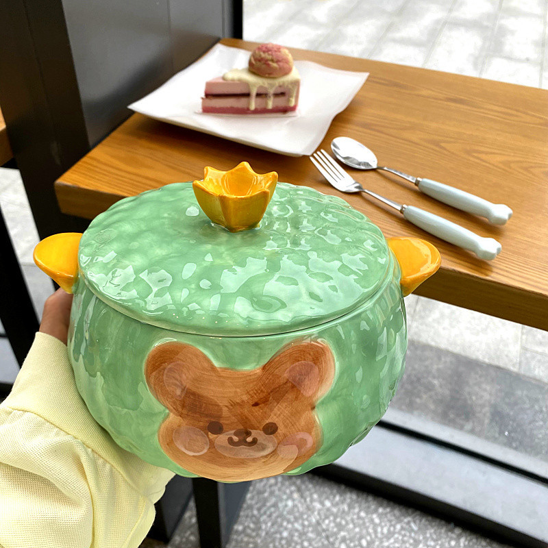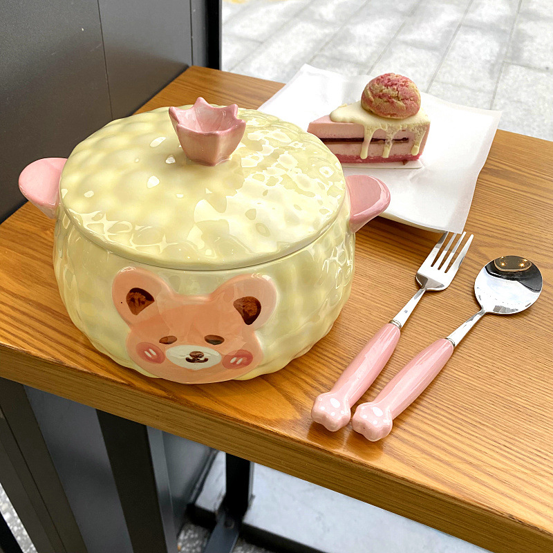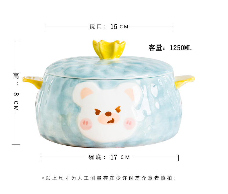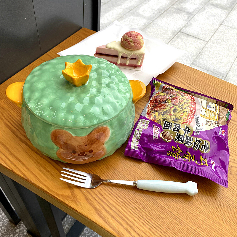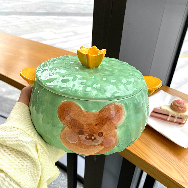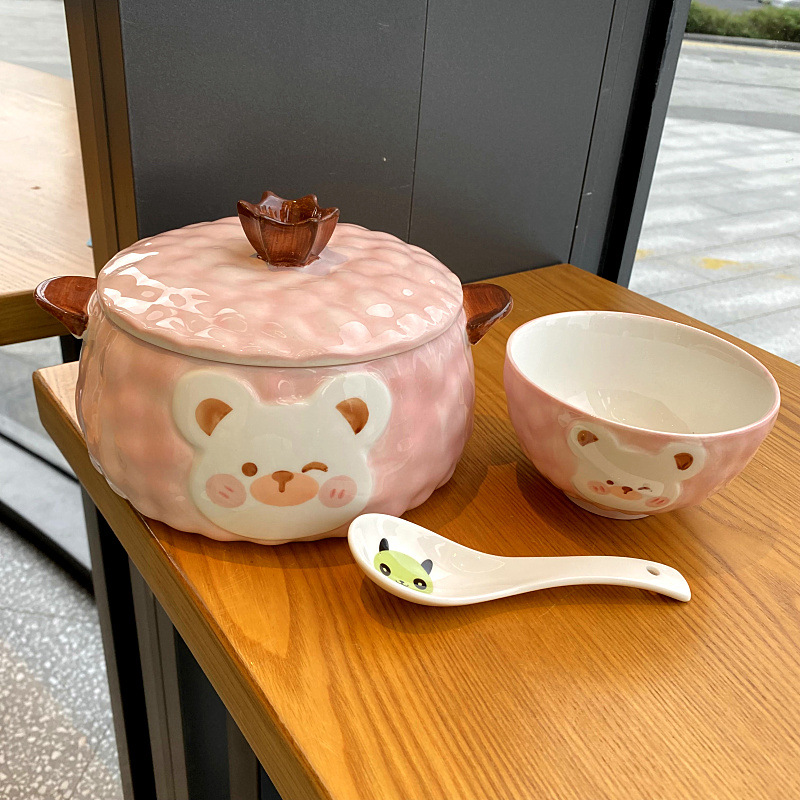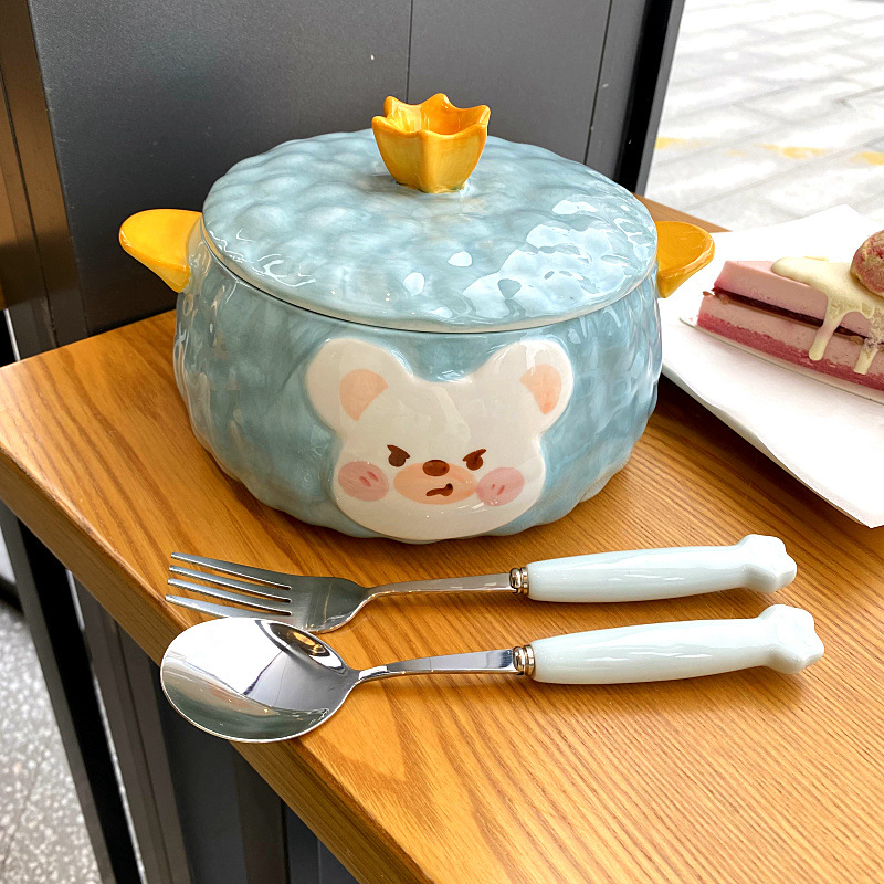 双耳陶瓷熊熊泡面碗可爱带盖创意少女心
