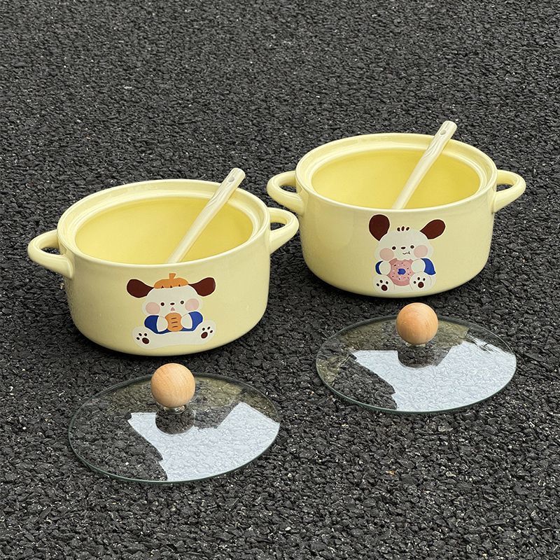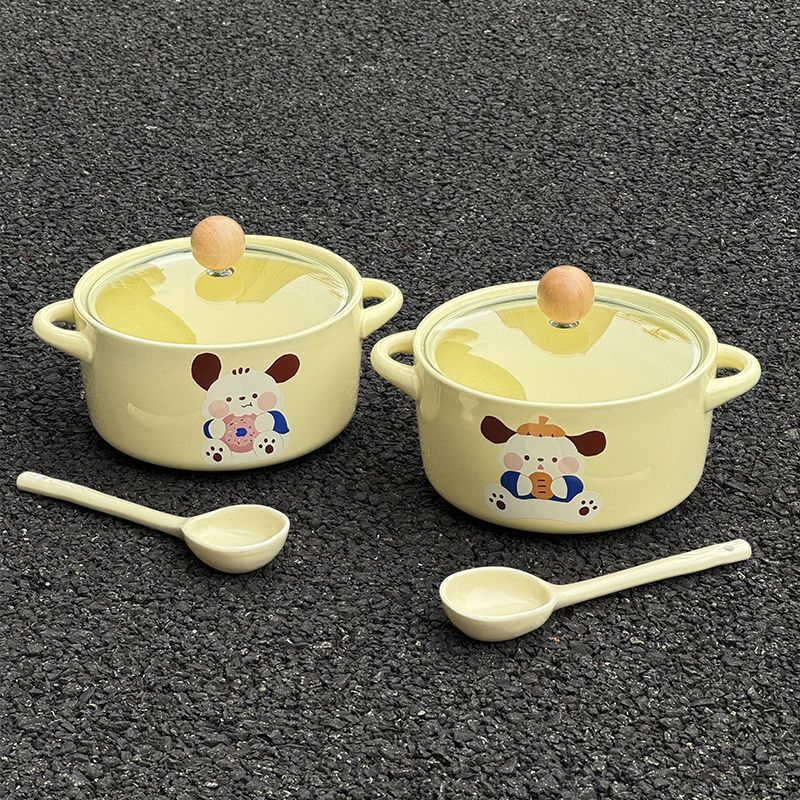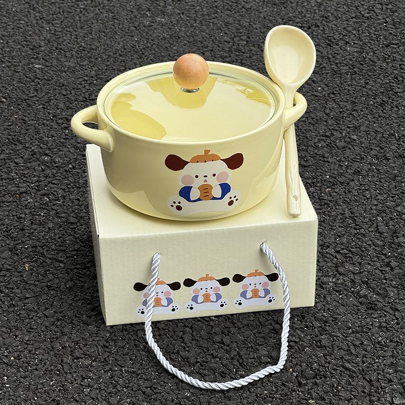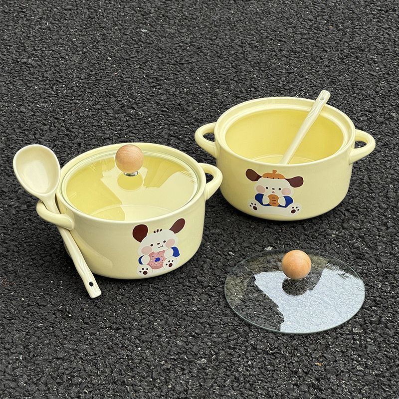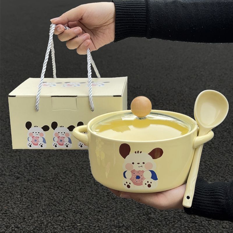 圆形风泡面陶瓷碗带盖学生宿舍用酸奶可爱餐具碗具汤碗套装