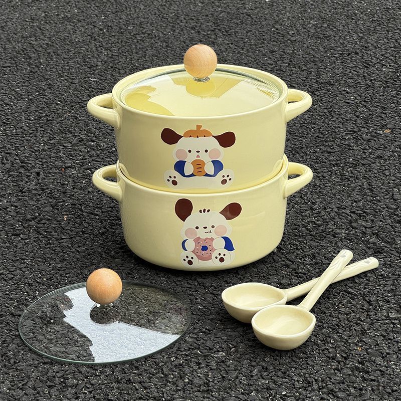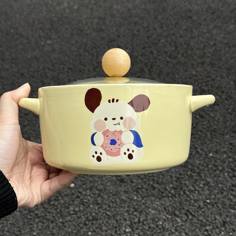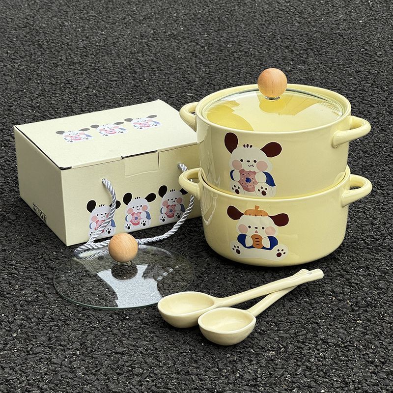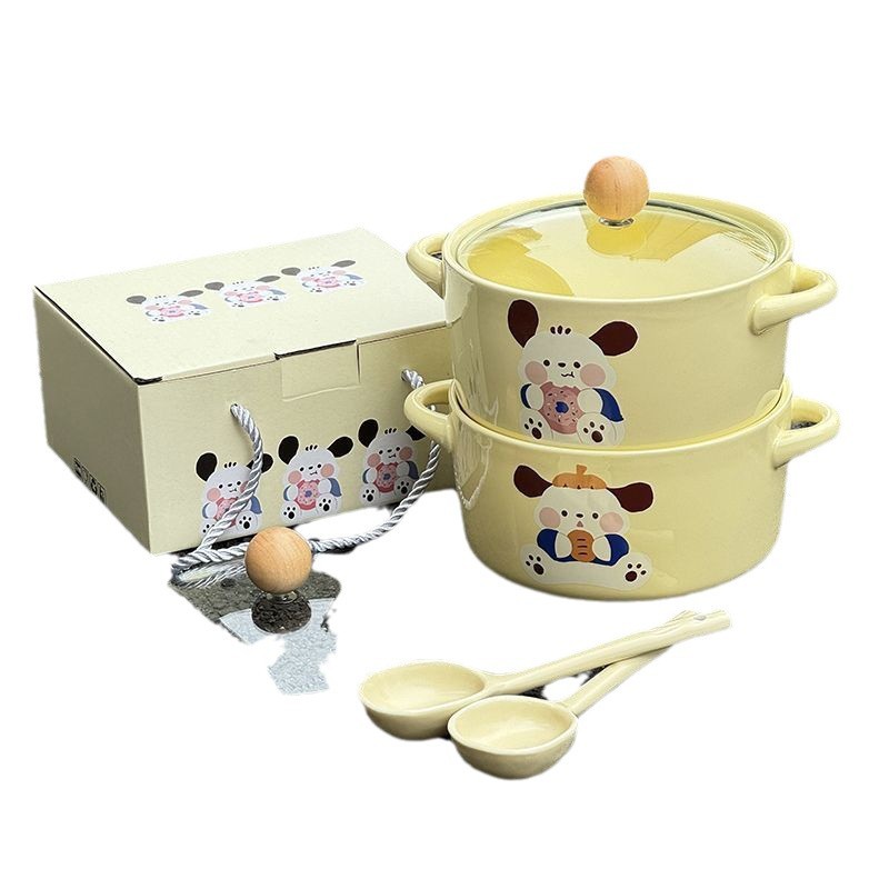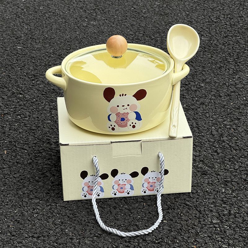 圆形风泡面陶瓷碗带盖学生宿舍用酸奶可爱餐具碗具汤碗套装