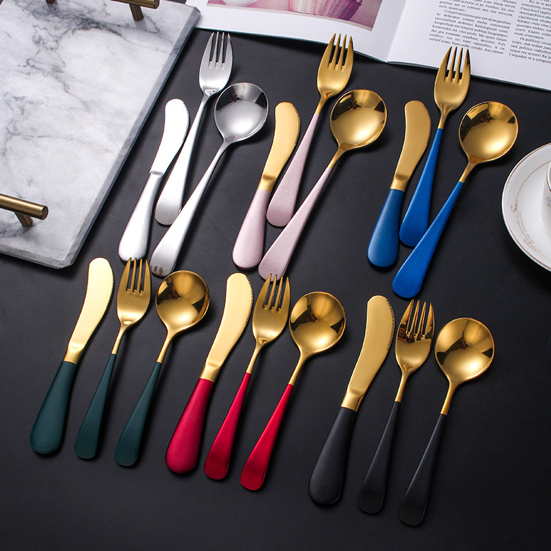 304不锈钢创意双拼色刀叉勺套装 儿童勺叉汤勺调羹小餐刀
