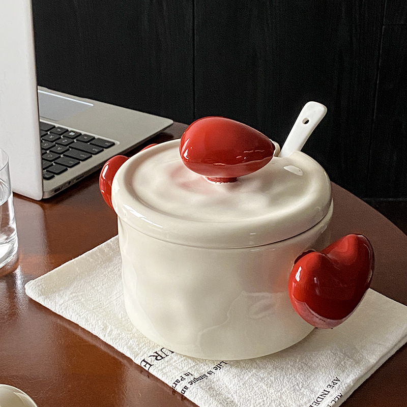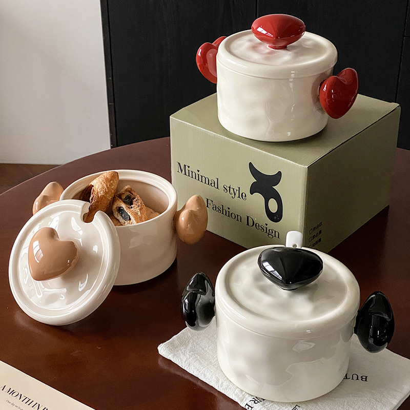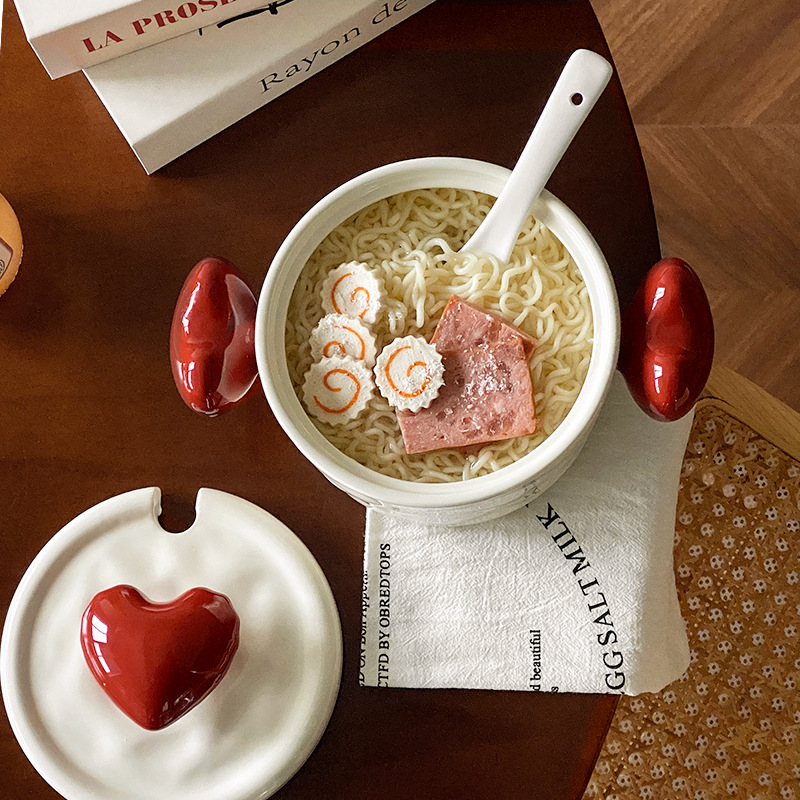 陶瓷猪油罐厨房家用带盖汤碗爱心可爱学生宿舍拉面双耳泡面碗