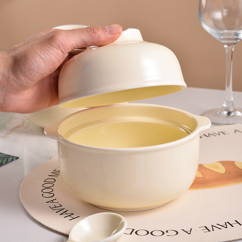 奶油风泡面碗5.9英寸【碗盖也是碗】