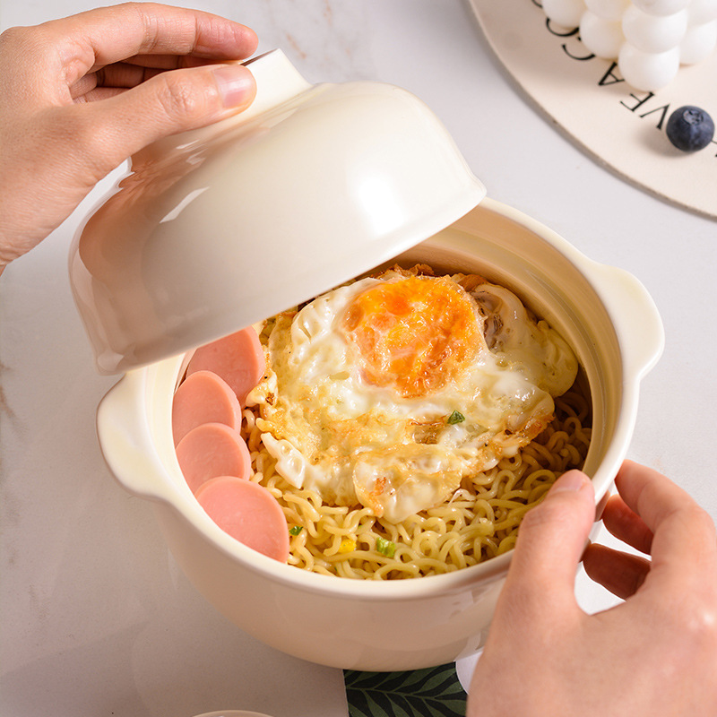 泡面碗宿舍学生带盖陶瓷面碗可微波带手柄碗