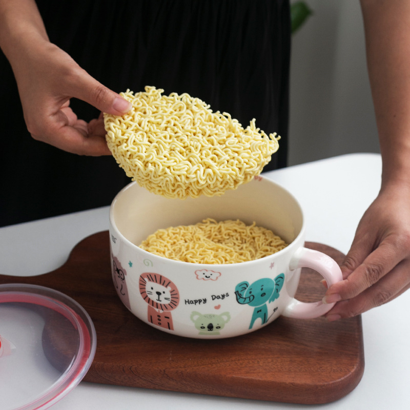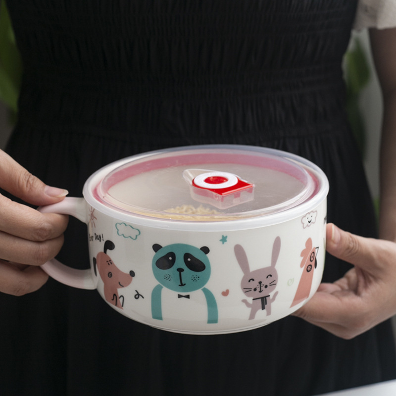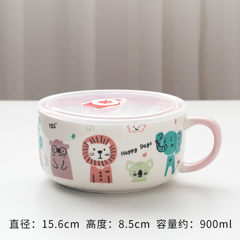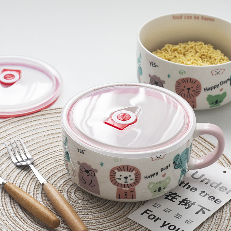 手汤碗家用陶瓷保鲜碗带盖上班族饭盒
