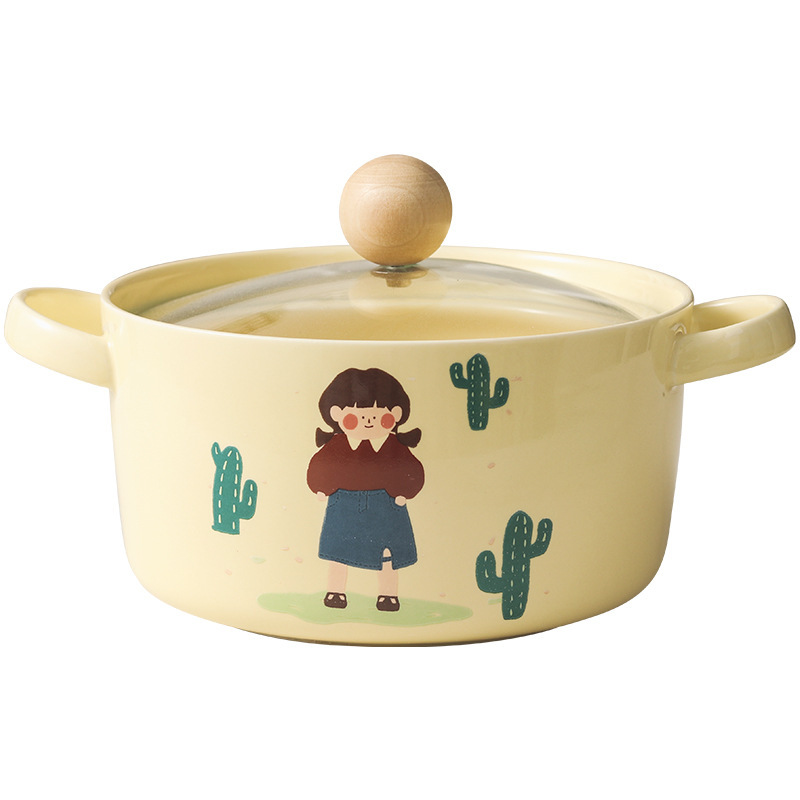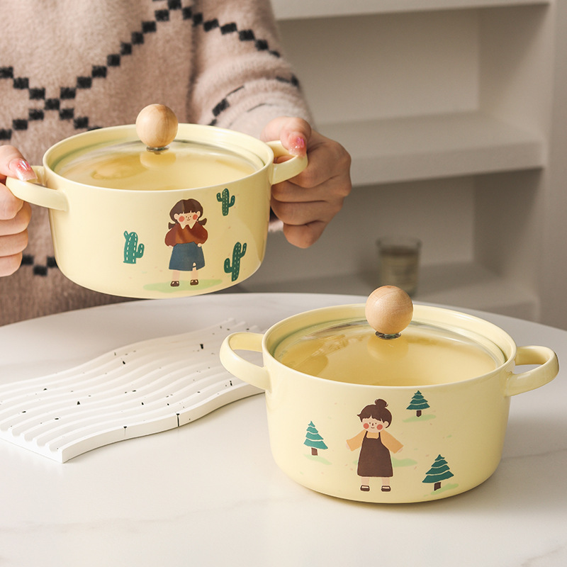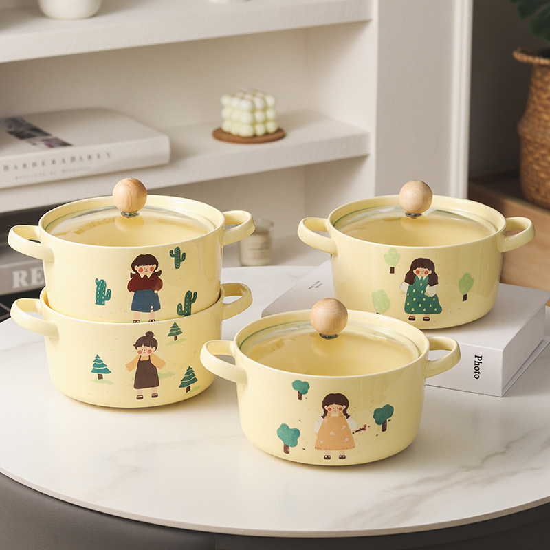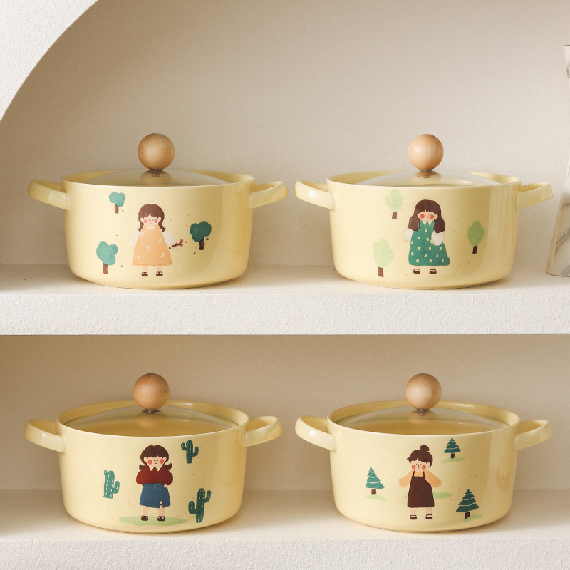 ◮双耳面碗-黄裙女孩(不带盖)◮