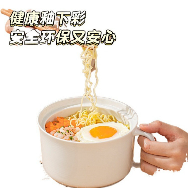 陶瓷泡面碗带盖勺带手柄个人方便面碗大号