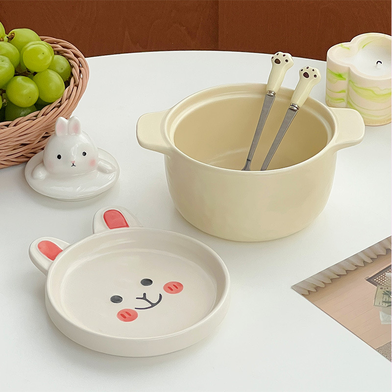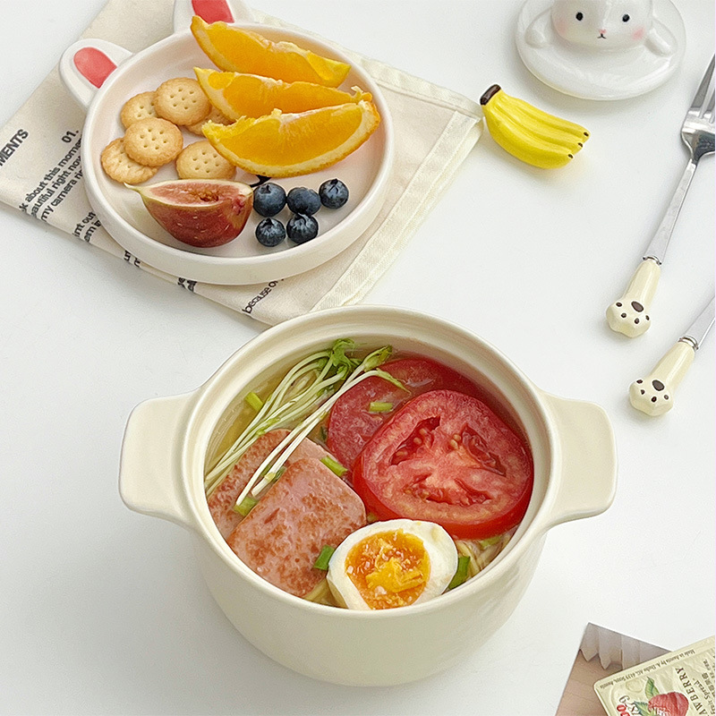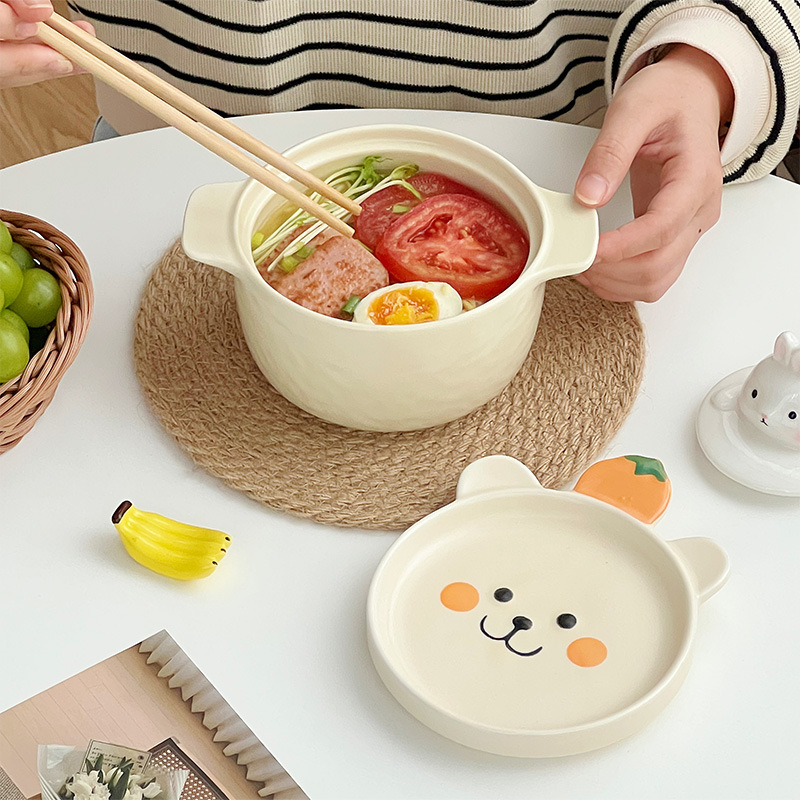 可爱卡通泡面碗带盖双耳陶瓷大容量汤碗学生党早餐碗家用