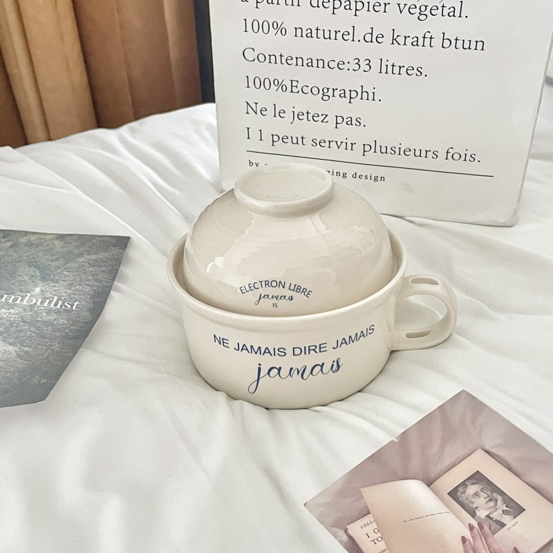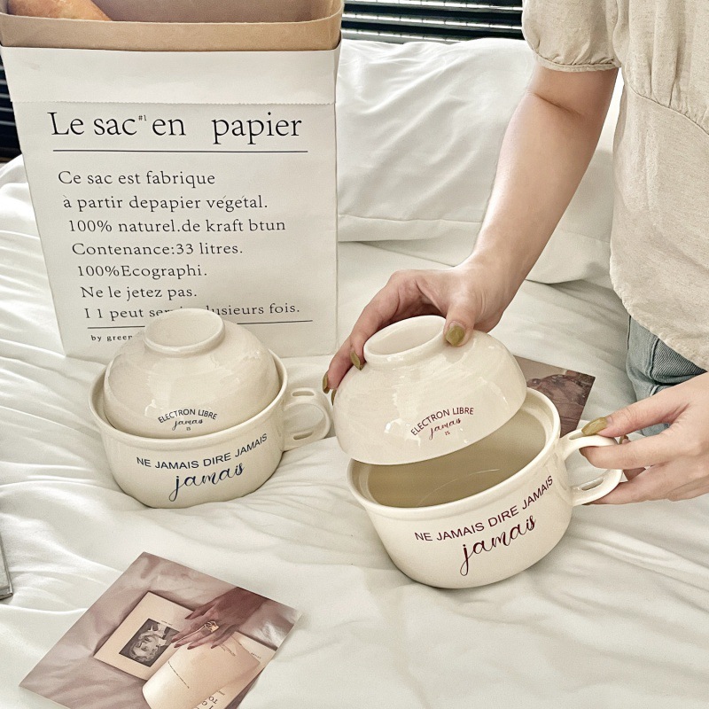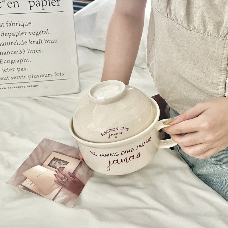 泡面碗带盖陶瓷简约带手柄饭碗饭盒碗筷