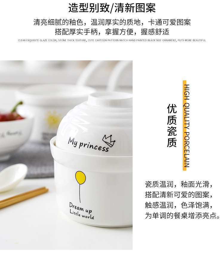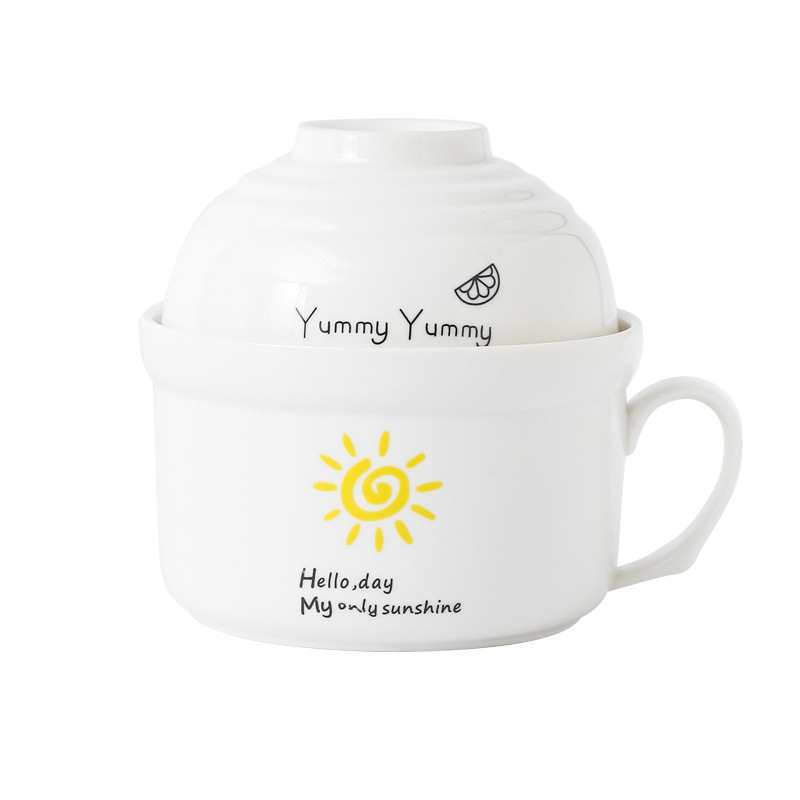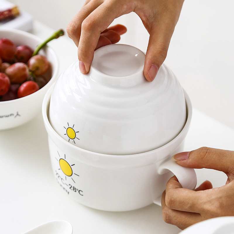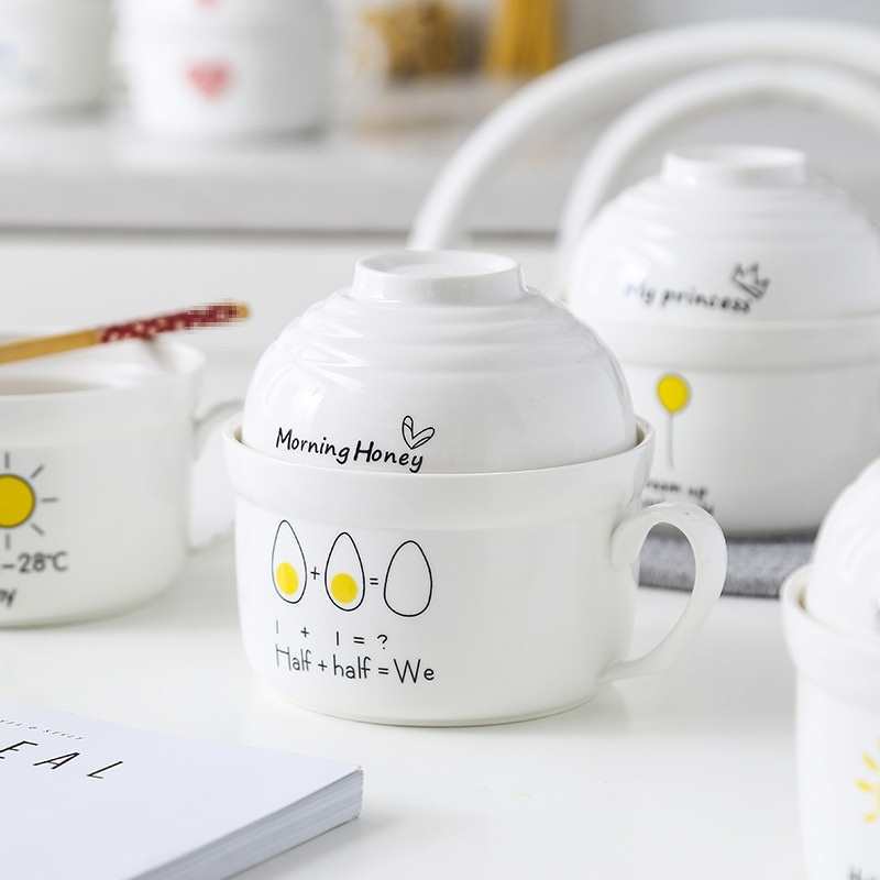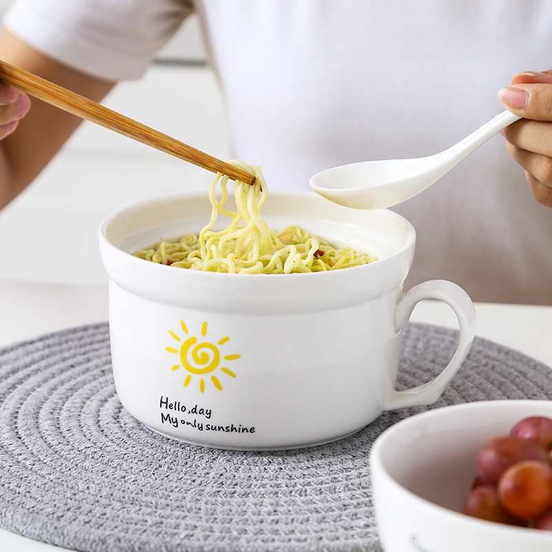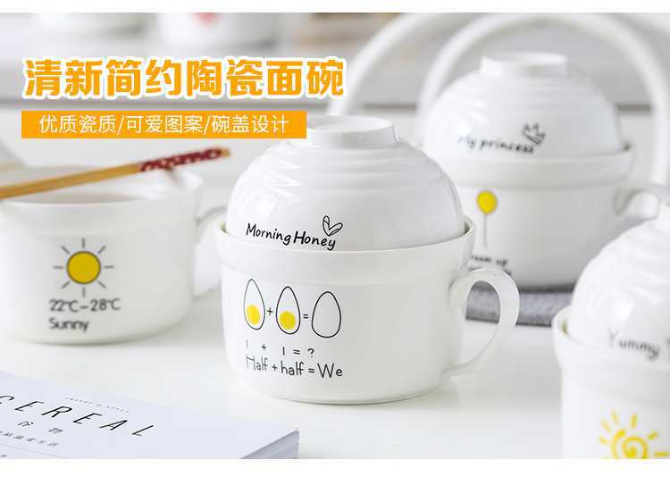 带盖碗饭盒上班族泡面碗带手柄陶瓷汤碗学生宿舍瓷碗方便面碗