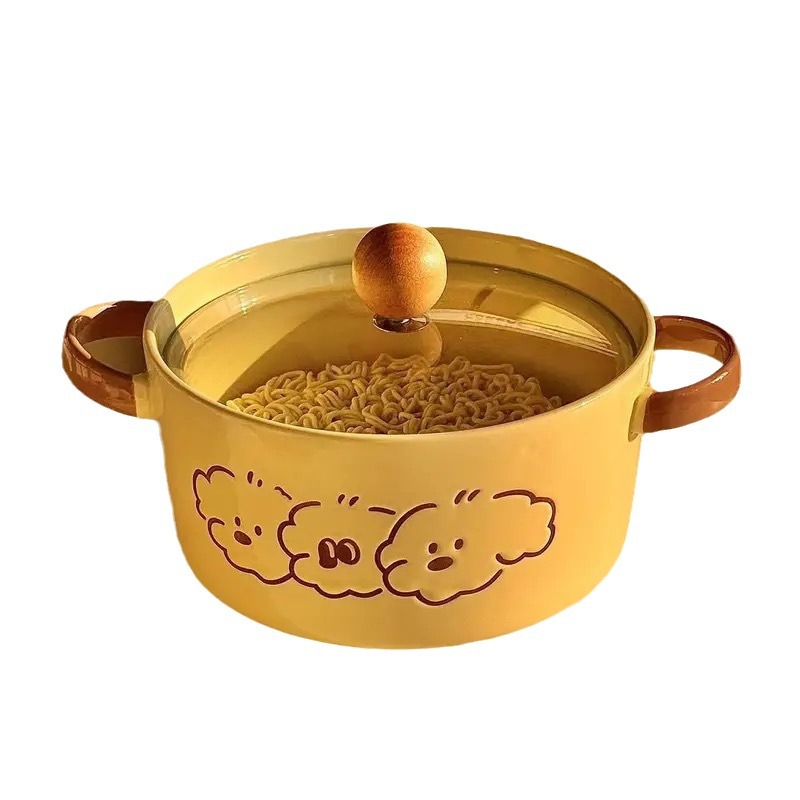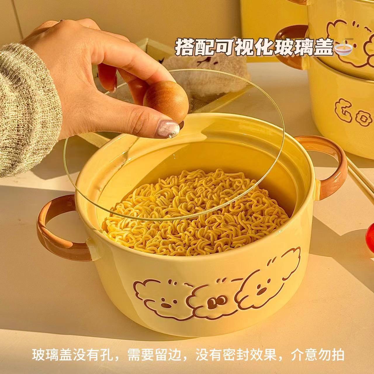 泡面碗带盖学生宿舍用方便面碗饭碗双耳陶瓷汤碗螺蛳粉碗