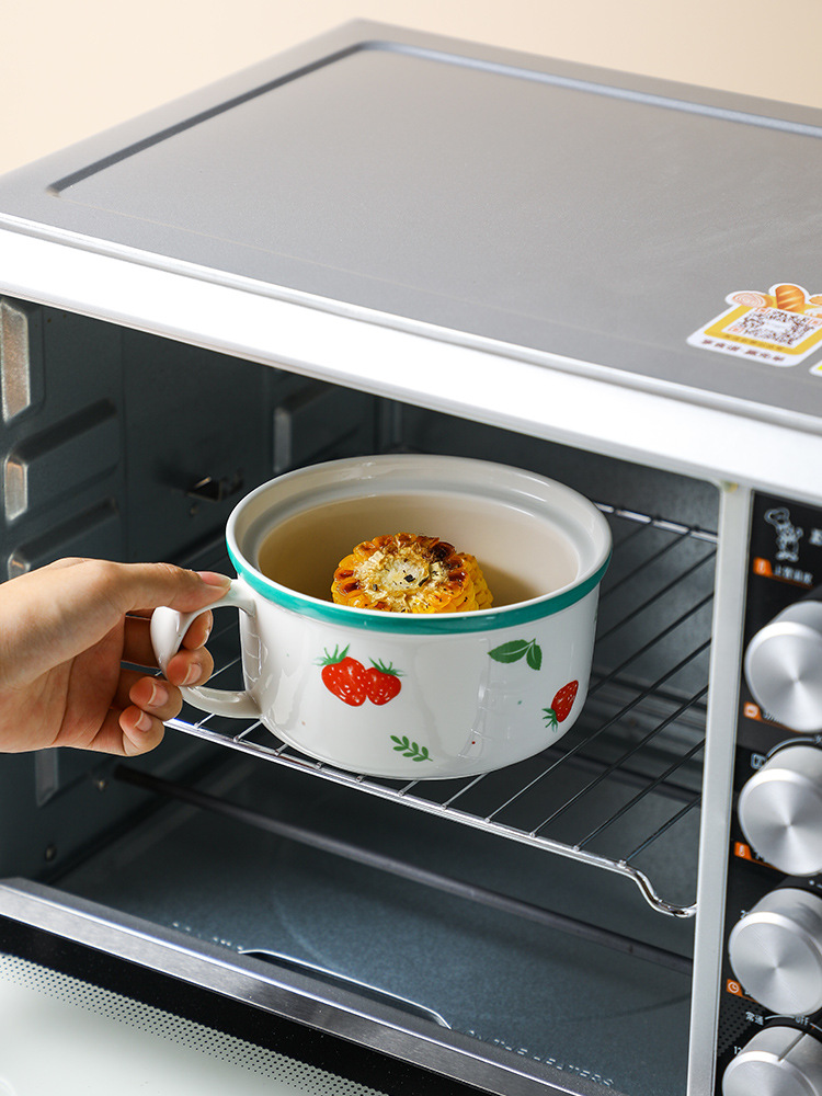6寸盖碗面杯-绿边草莓绿叶 收藏店铺送筷勺