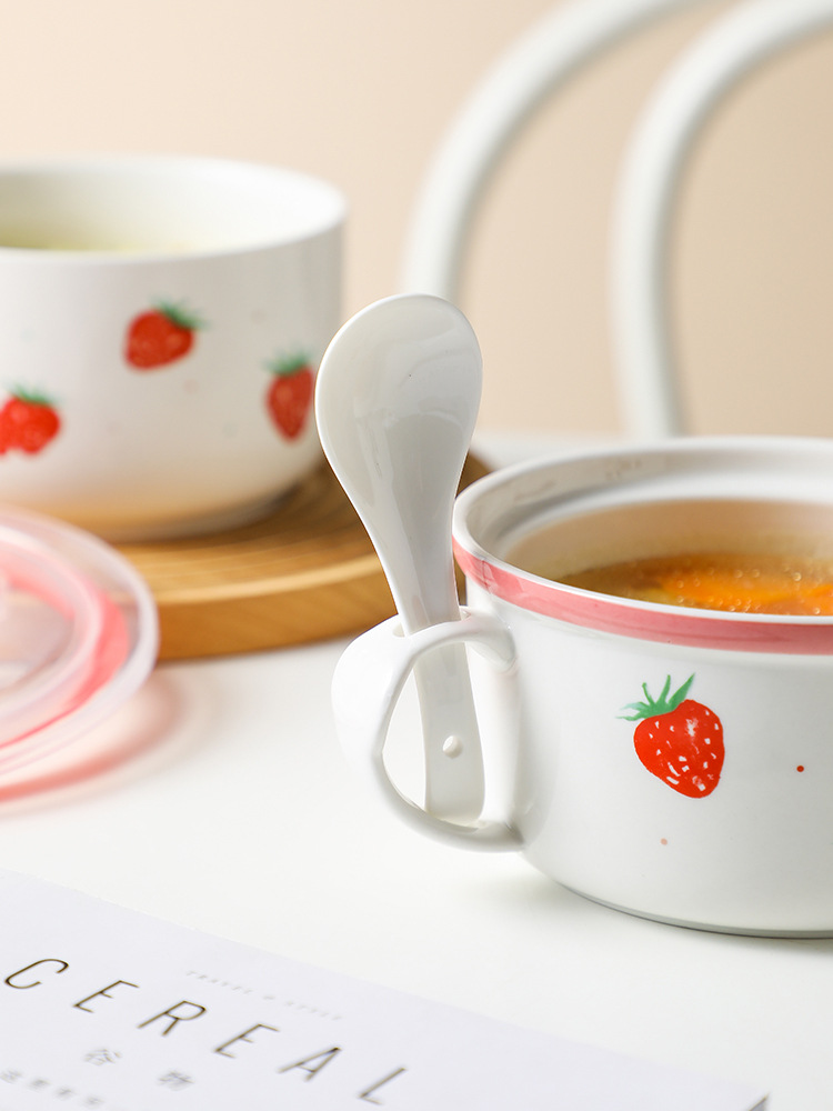 6寸盖碗面杯-纯白边草莓 收藏店铺送筷勺