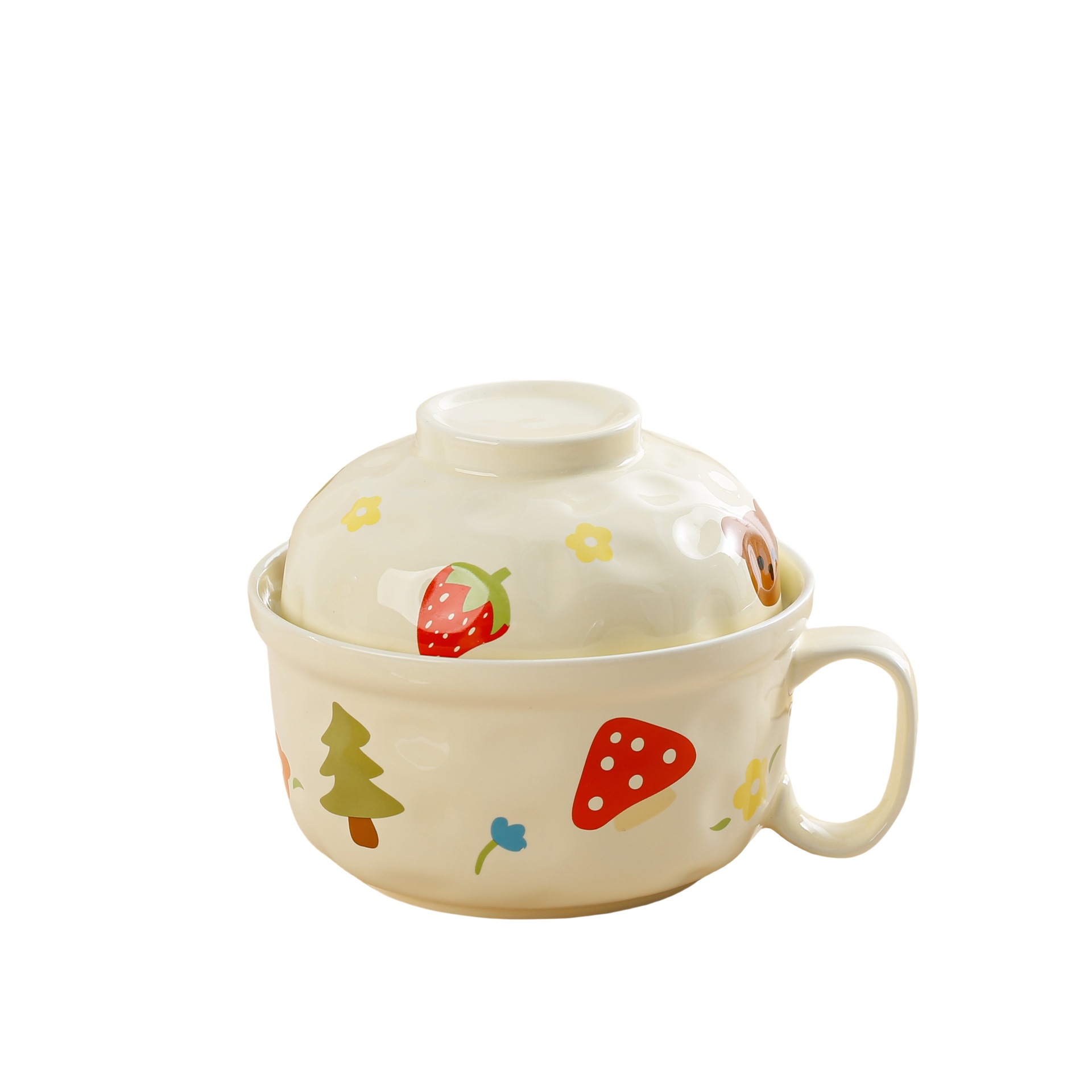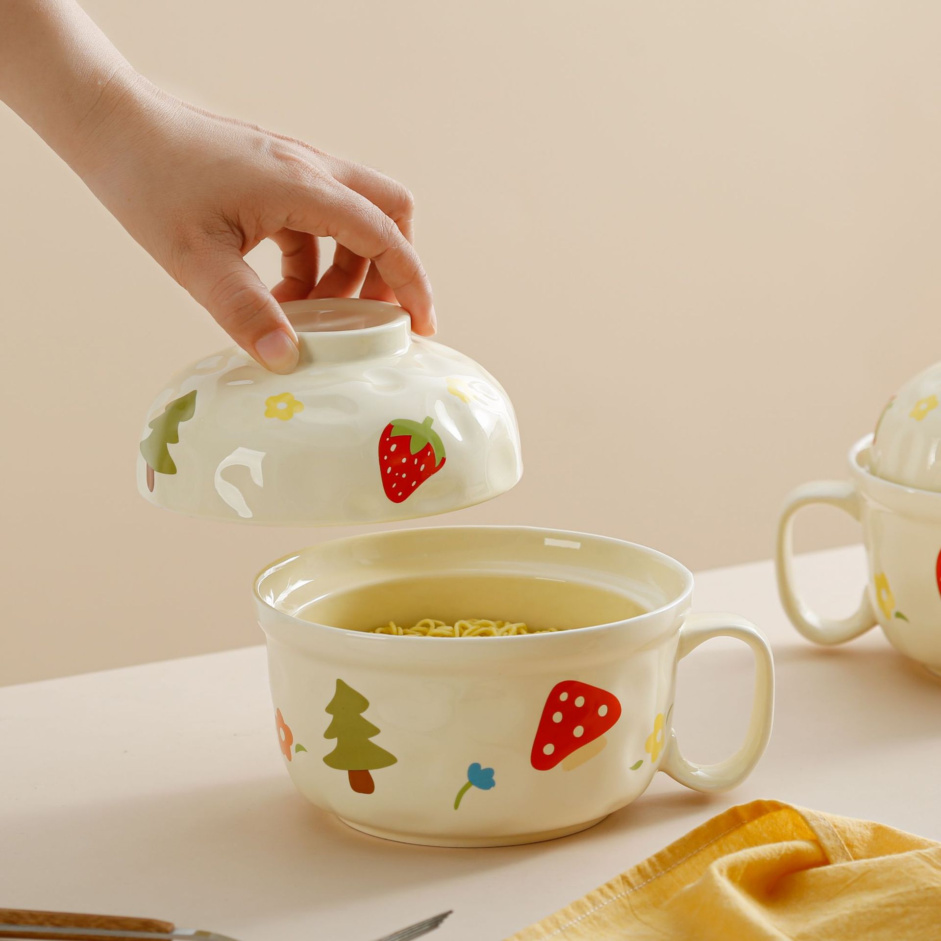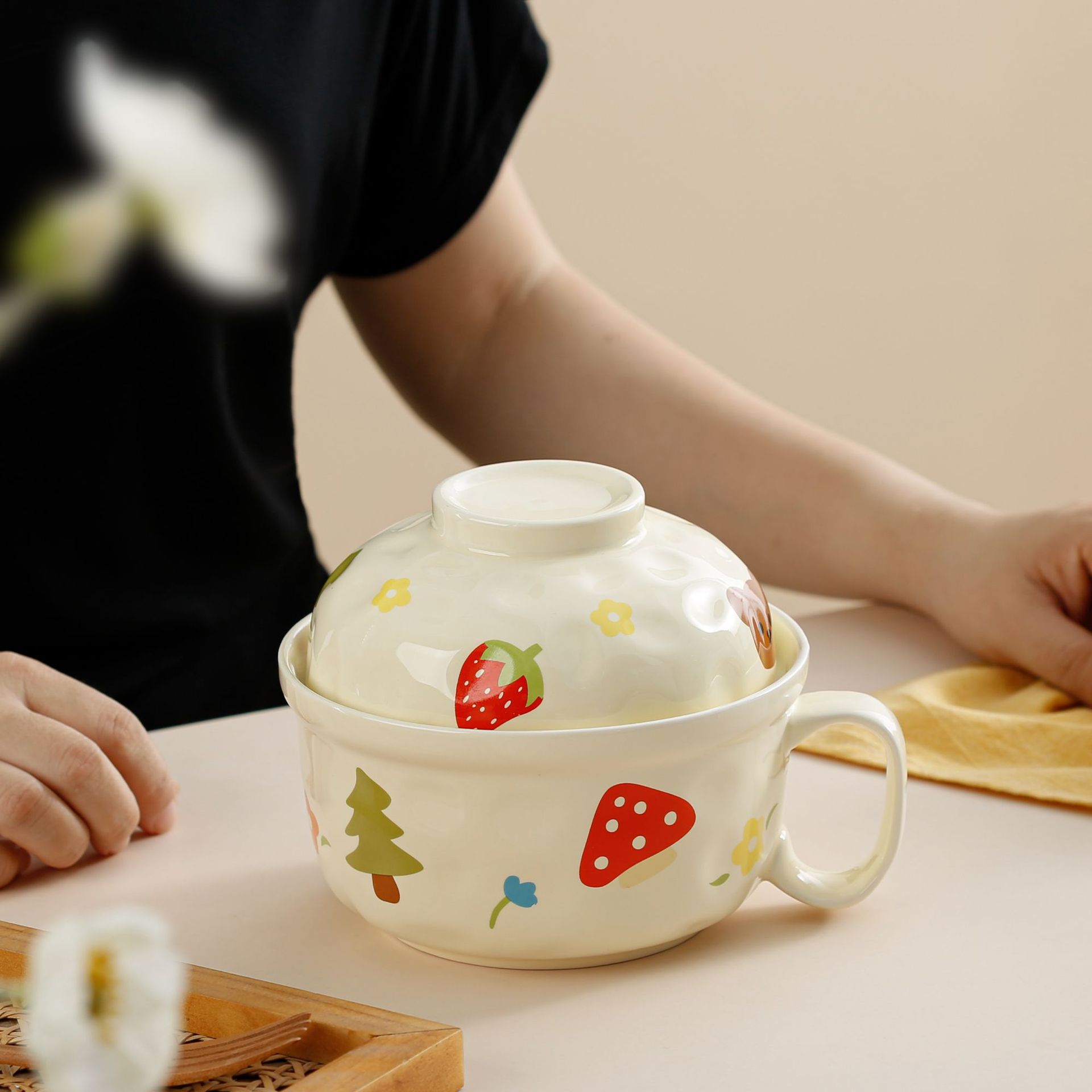 圆形风泡面陶瓷碗带盖学生宿舍用酸奶可爱餐具碗具汤碗套装