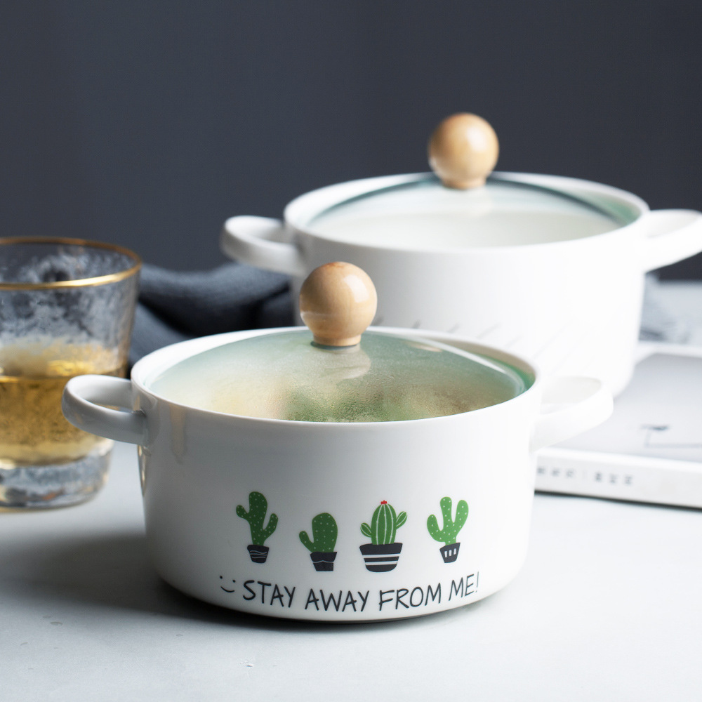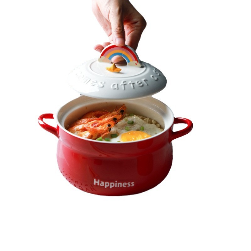 创意陶瓷碗泡面碗双耳带盖陶瓷餐具宿舍汤碗面碗高颜值