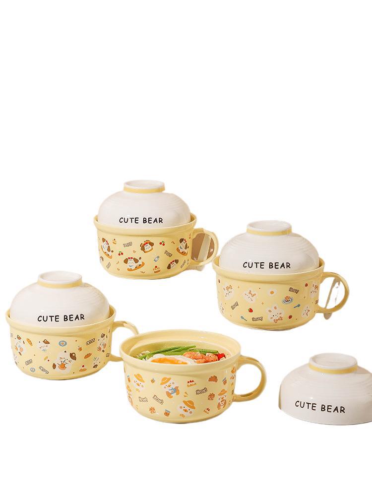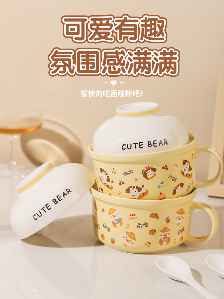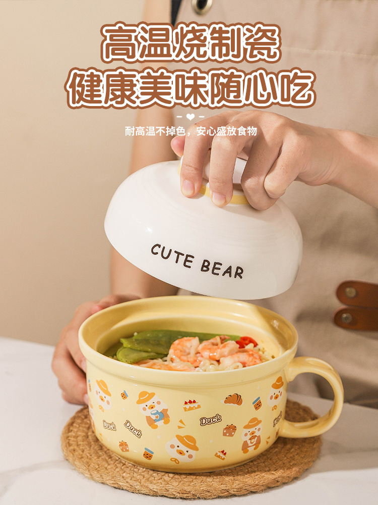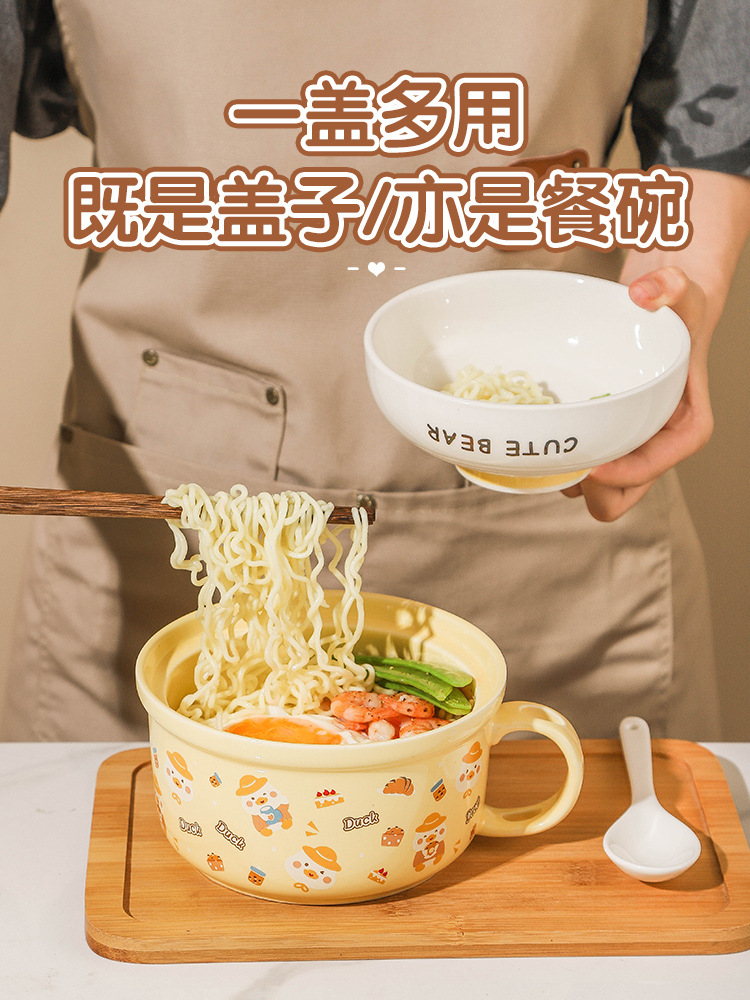 泡面碗带盖家用陶瓷方便面碗宿舍用学生泡面杯