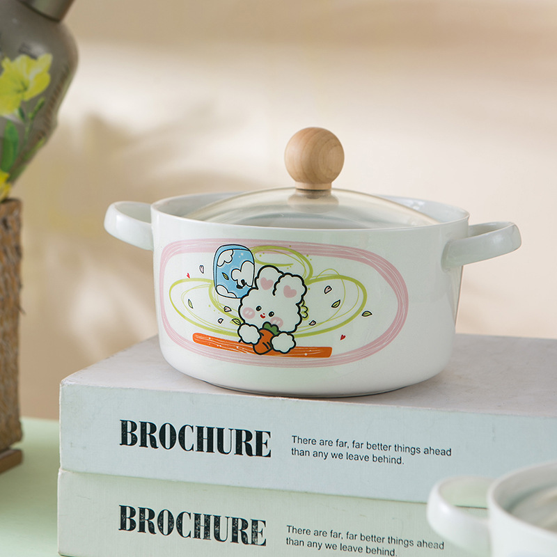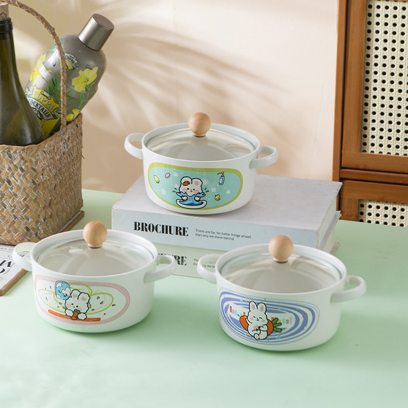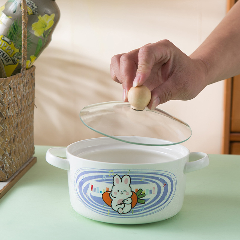 泡面碗家用带把防烫双耳碗带盖学生宿舍方便面碗可爱日式陶瓷