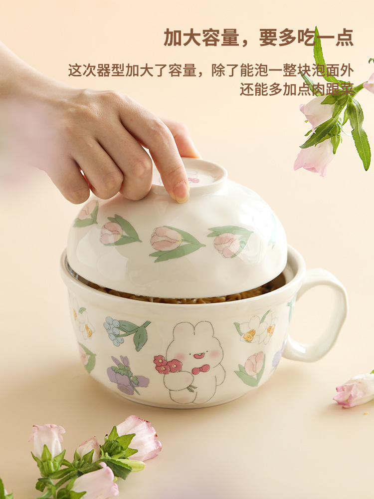 泡面碗带盖高颜值可爱陶瓷方便面碗