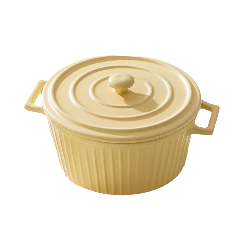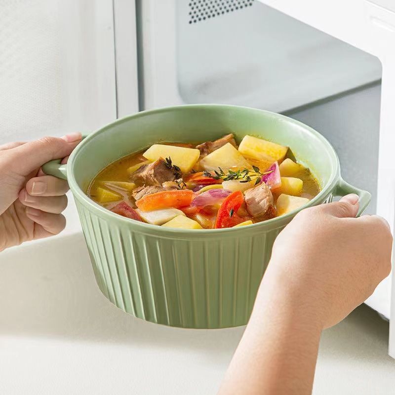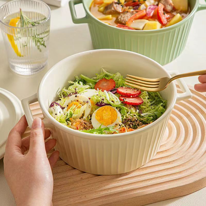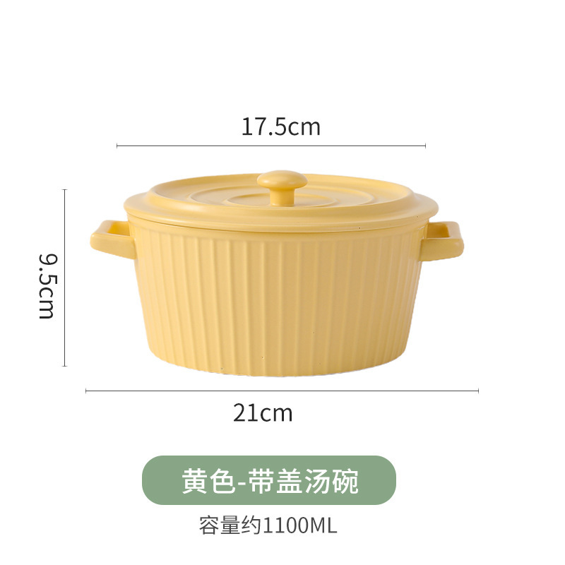 大号陶瓷汤碗家用高级感泡面碗带盖奶油风装汤盆竖纹面碗烤箱