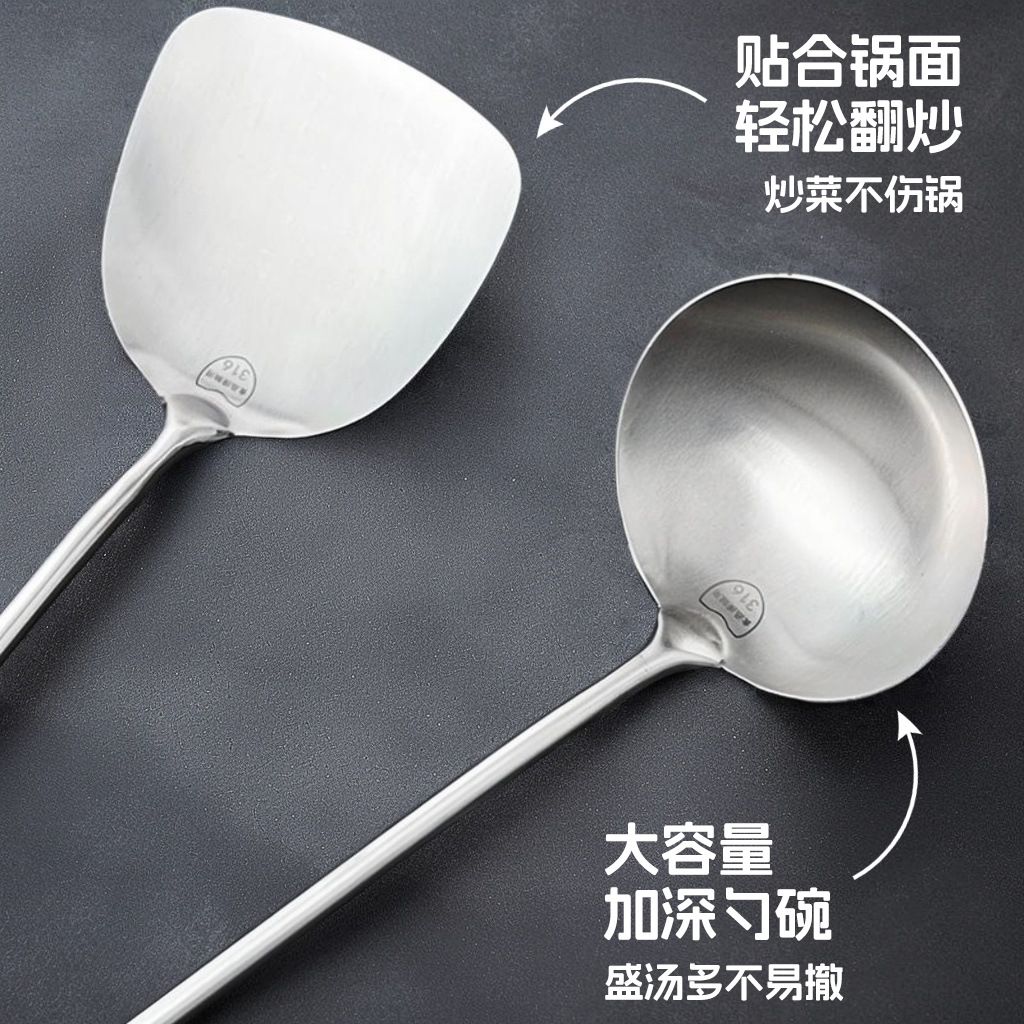 胡桃木柄烹饪勺铲316不锈钢牛排鸡蛋煎铲耐高温锅铲汤勺厨具套装