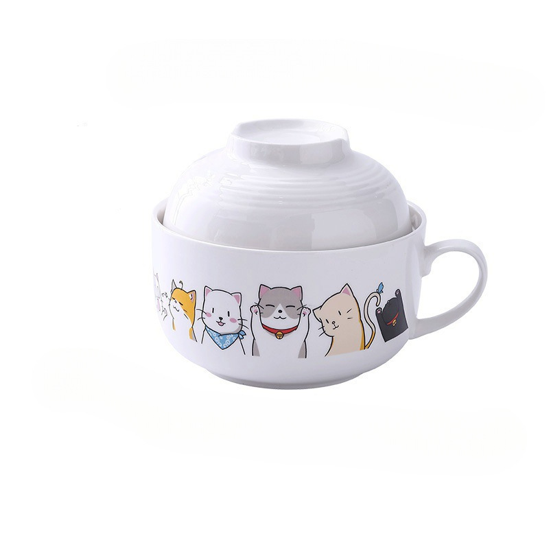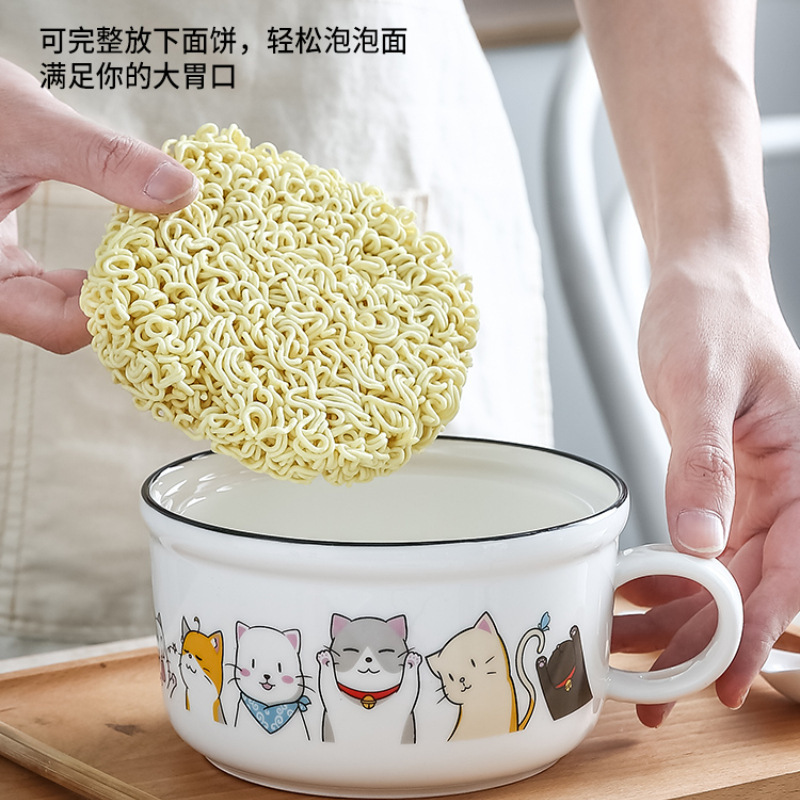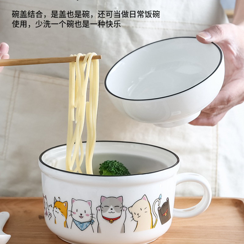 泡面碗带盖碗学生宿舍单个卡通方便面碗餐具碗筷套装