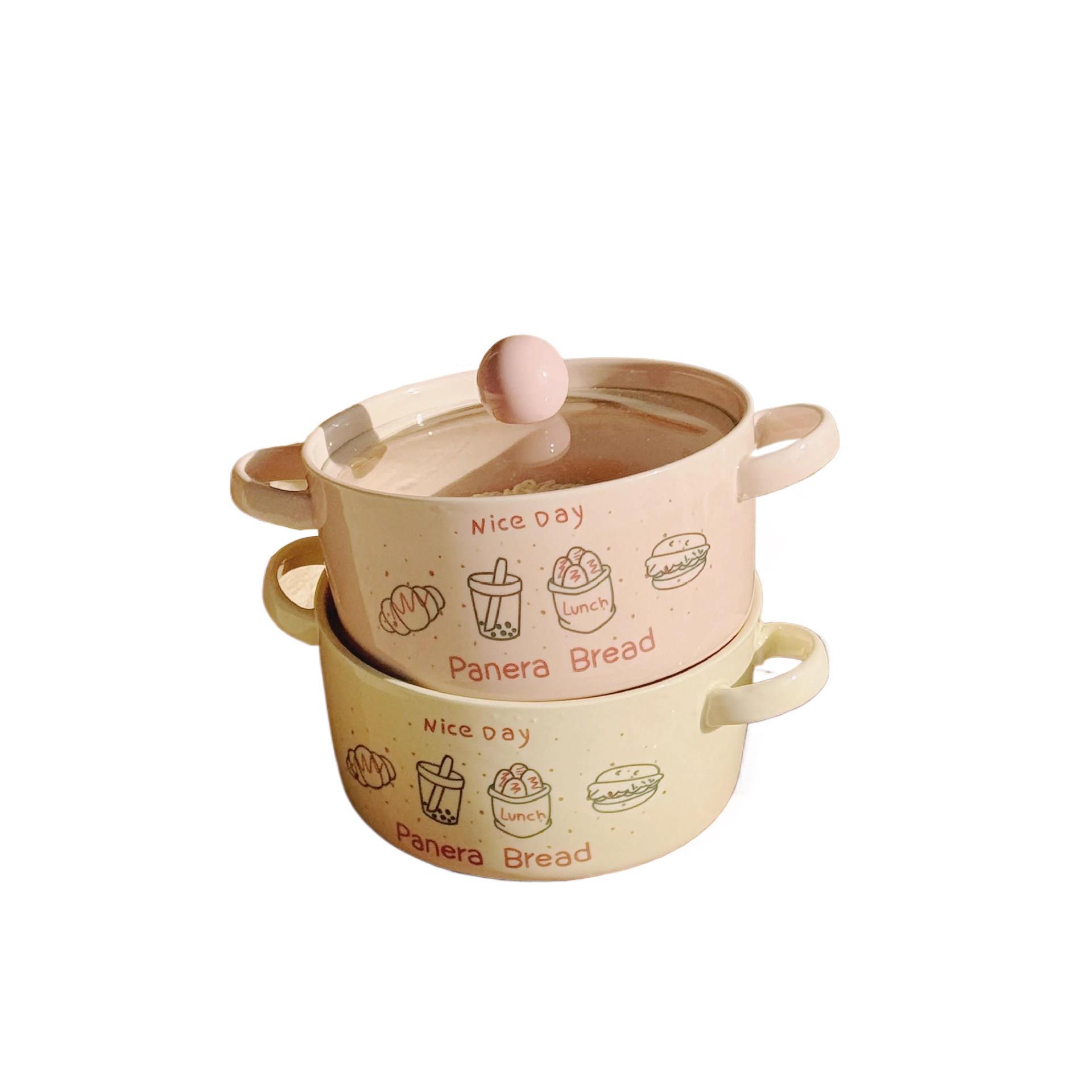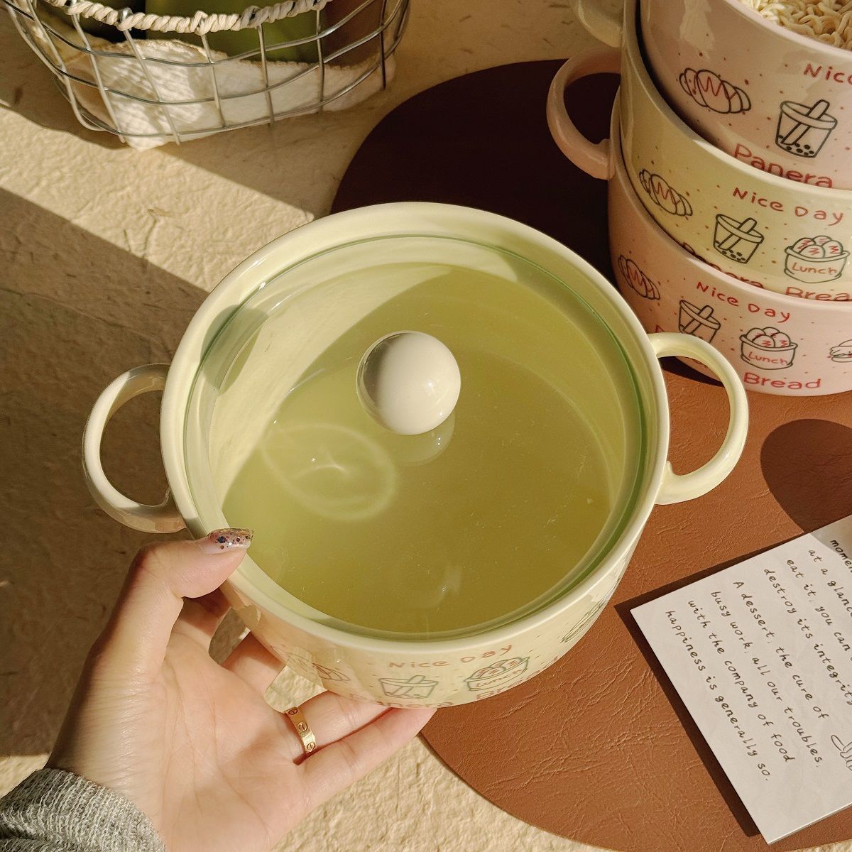 可爱双耳泡面碗宿舍学生带盖陶瓷大容量面碗汤碗