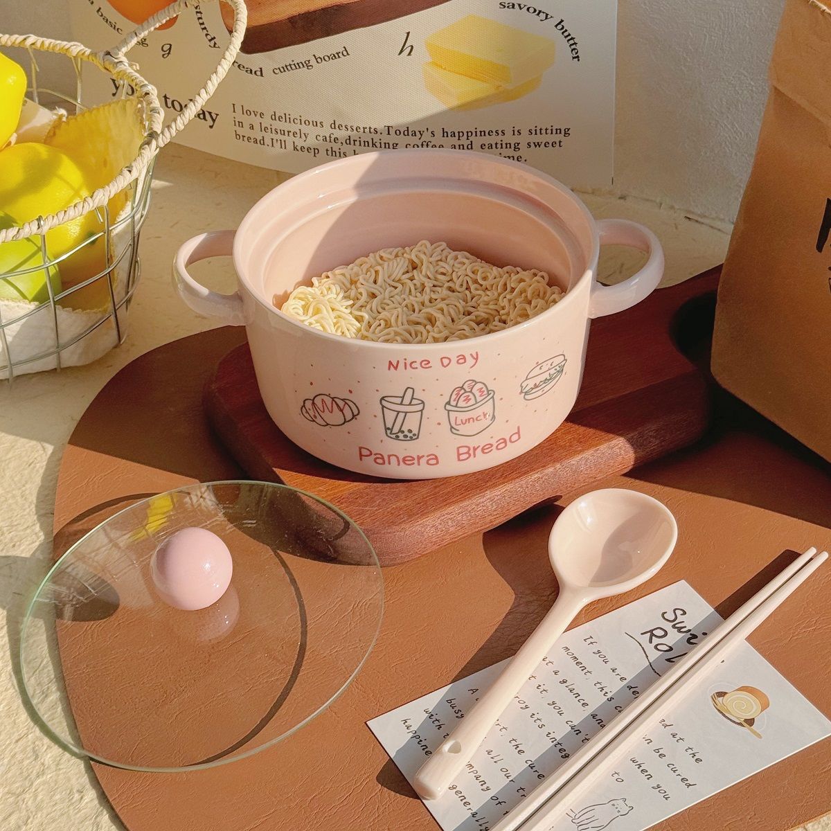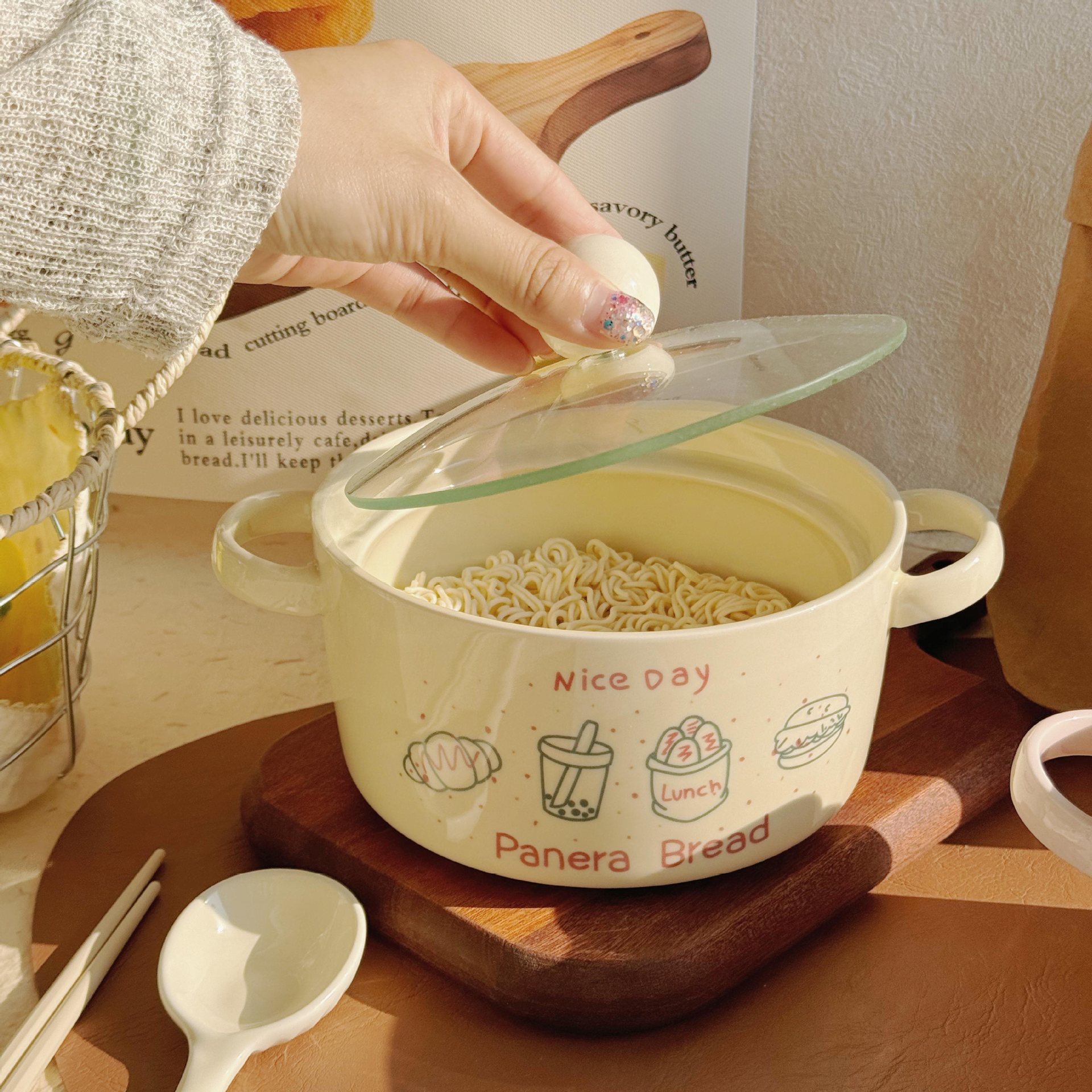 双耳面碗-奶白色(带盖)+专属勺+筷子