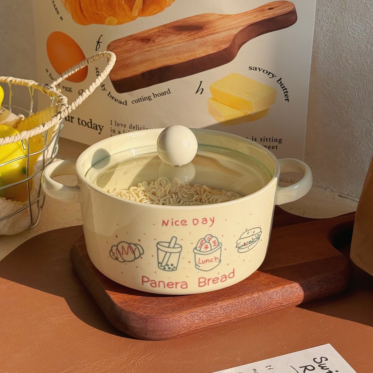 双耳面碗-奶白色(带盖)