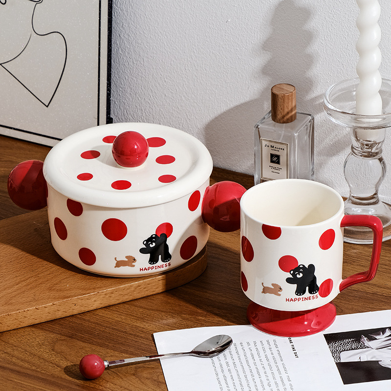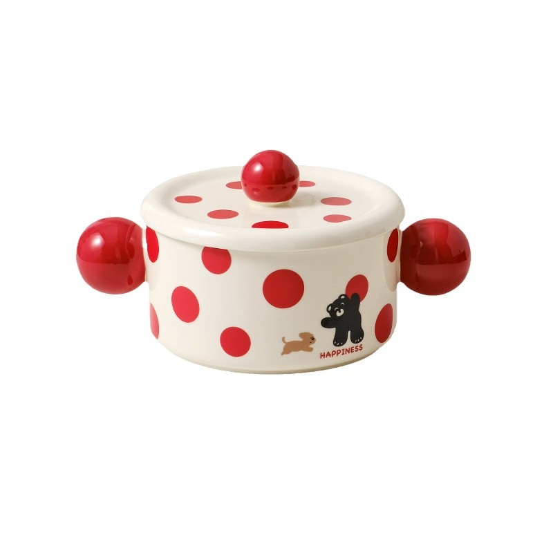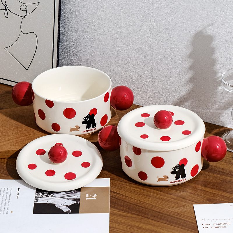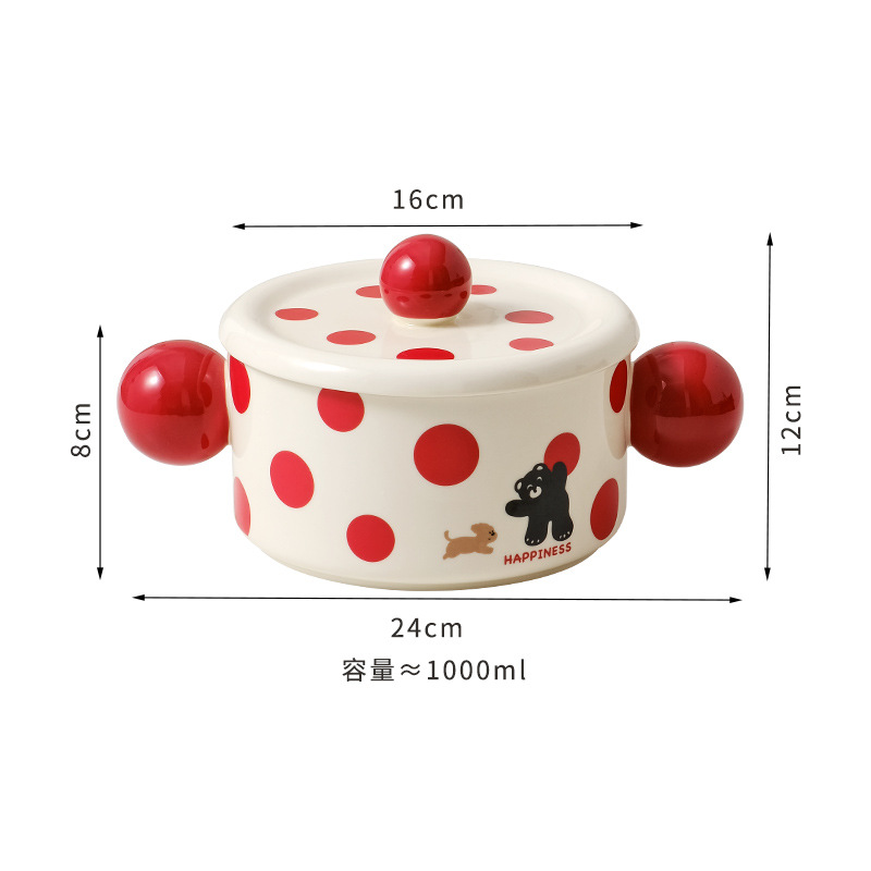 可爱卡通熊陶瓷汤锅带盖大容量泡面碗学生宿舍双耳汤碗
