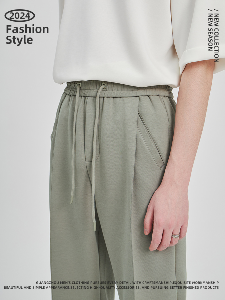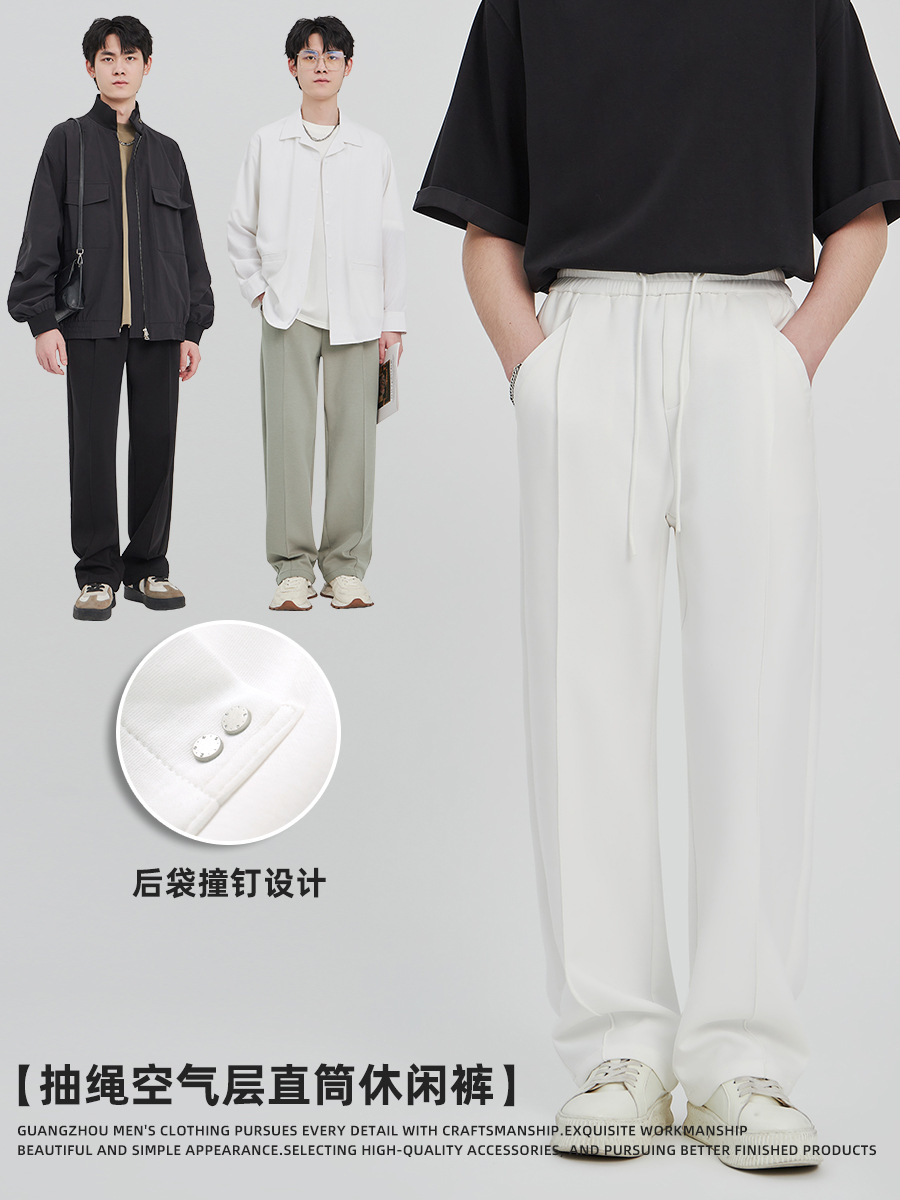 APO男装|韩风宽松阔腿休闲卫裤春夏空气层直筒针织抽绳裤子男