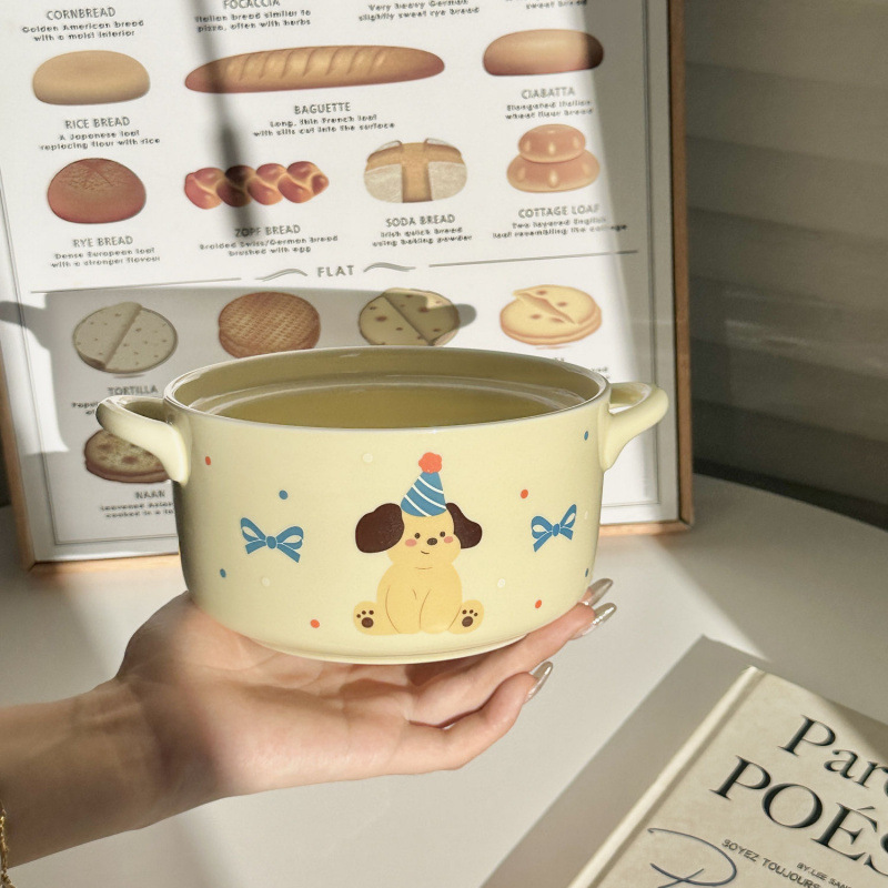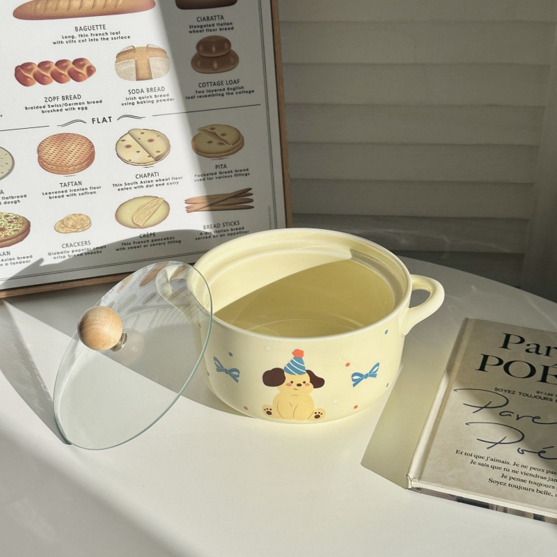 奶油小狗陶瓷泡面碗带盖学生宿舍用方便面碗大容量汤碗