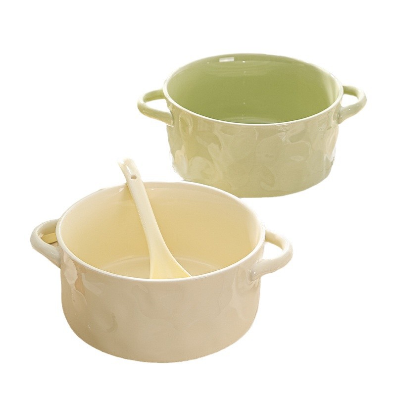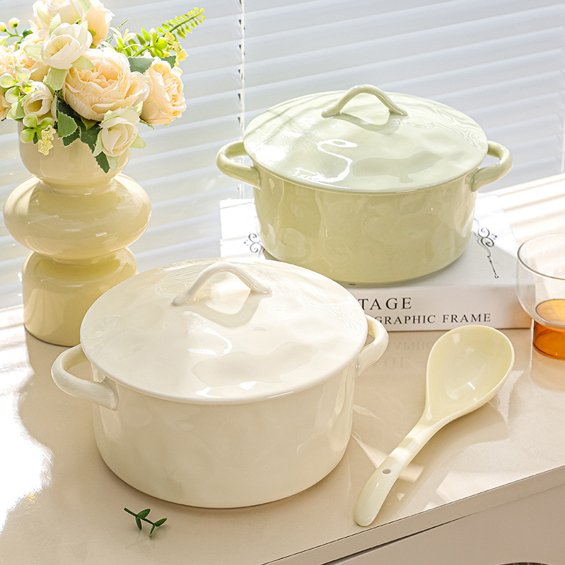 奶油风双耳大汤碗家用陶瓷汤盆大号带盖感泡面碗大碗