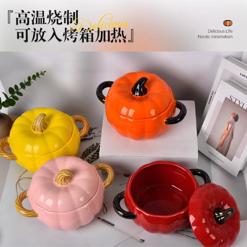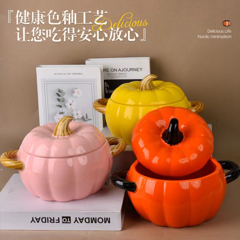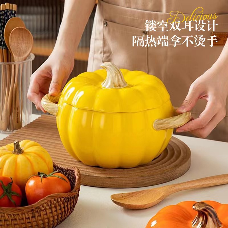陶瓷南瓜带盖双耳大汤碗家用创意盛汤大号汤盆防烫泡面碗螺蛳粉碗
