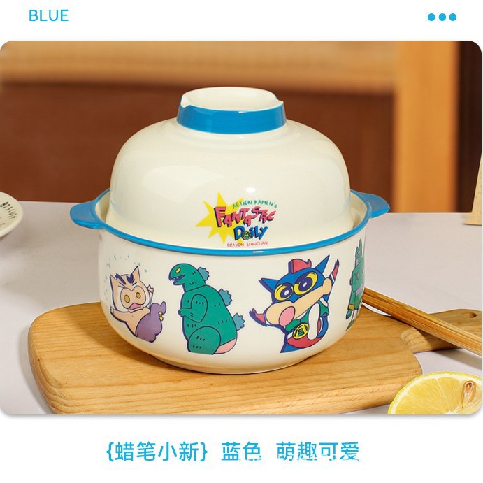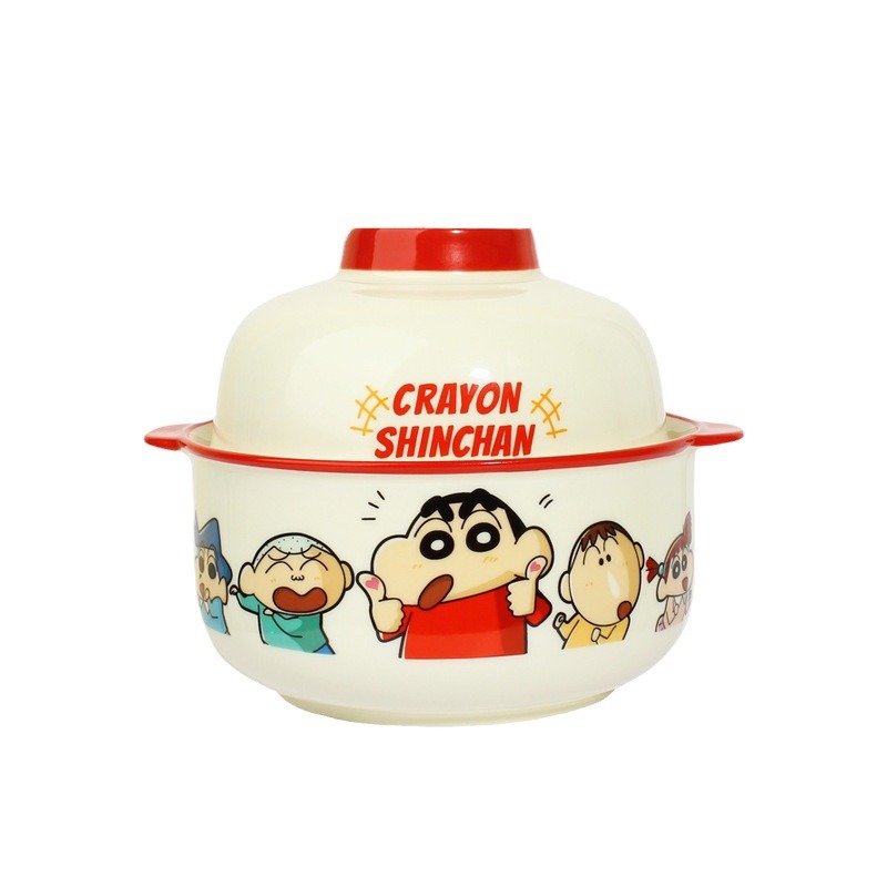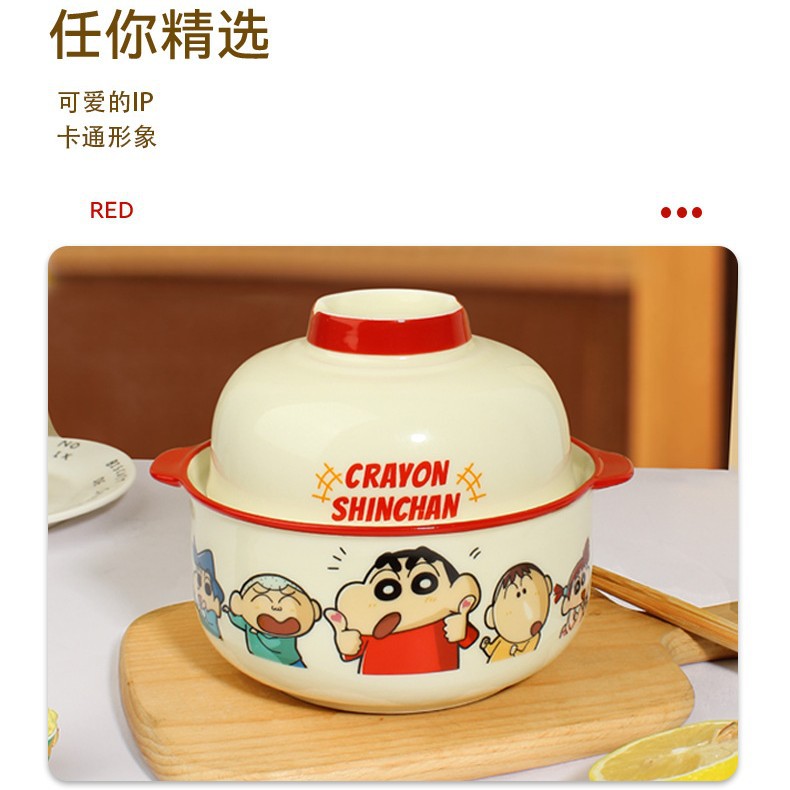 蜡笔小新泡面碗带盖卡通高颜值大号家用碗筷陶瓷碗