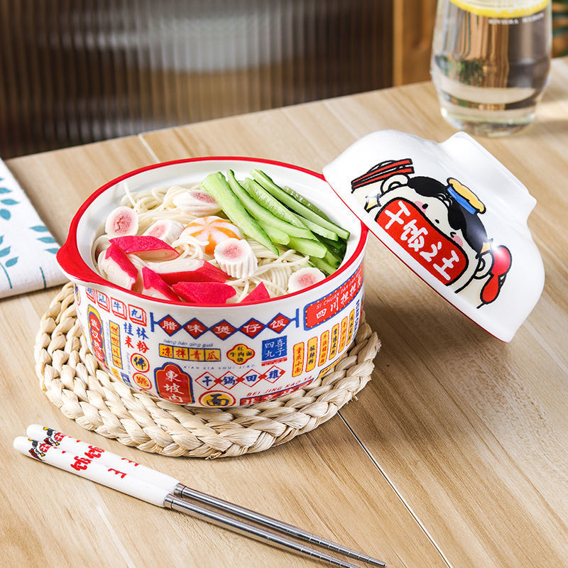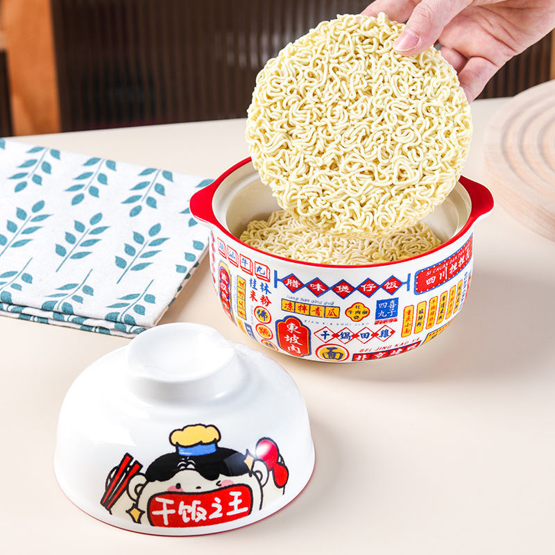 干饭超大号泡面碗带盖陶瓷宿舍碗家用可爱便当碗学生打饭碗