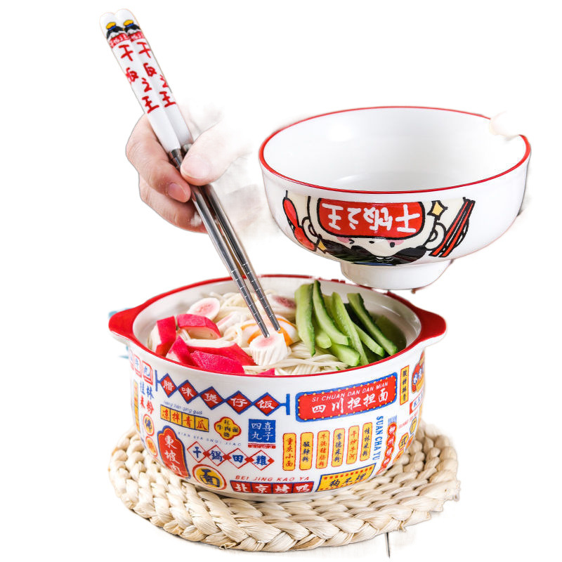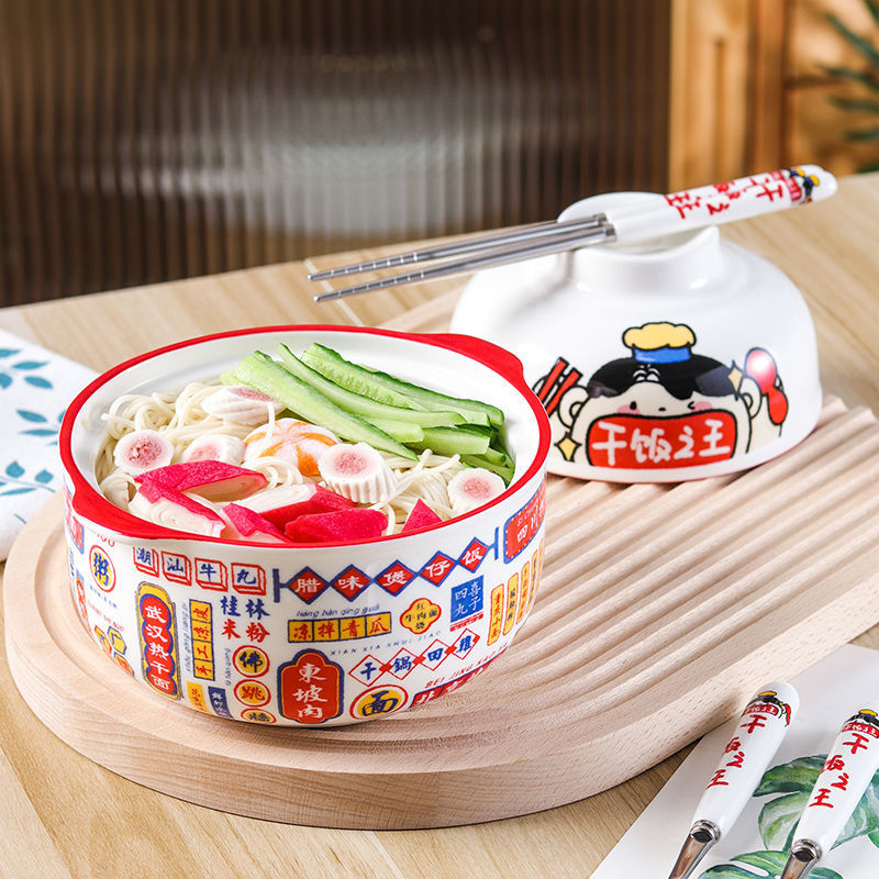 双耳面碗【干饭之王+盖+樱花筷+勺】