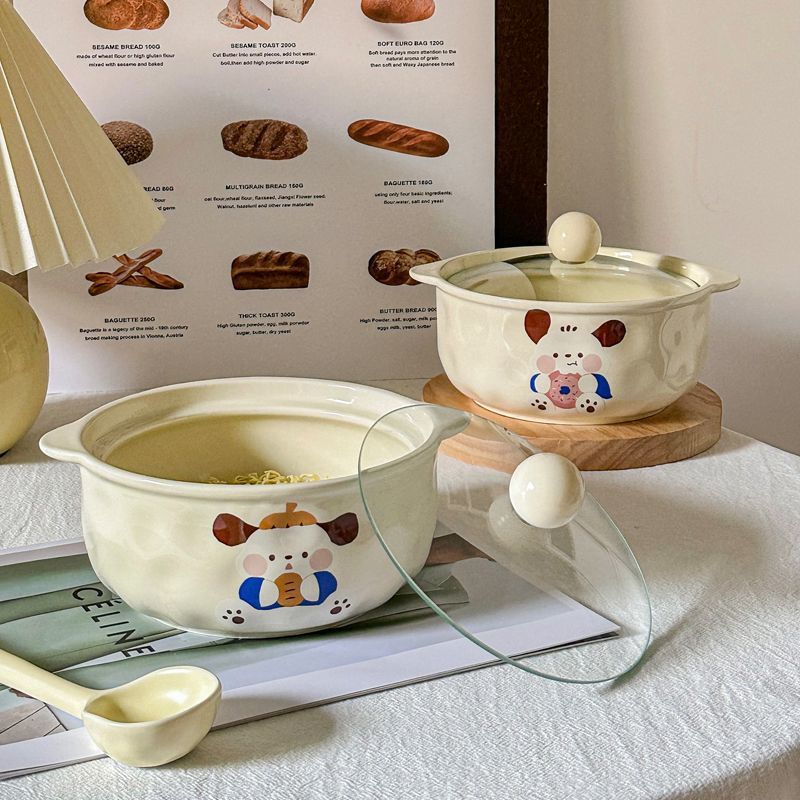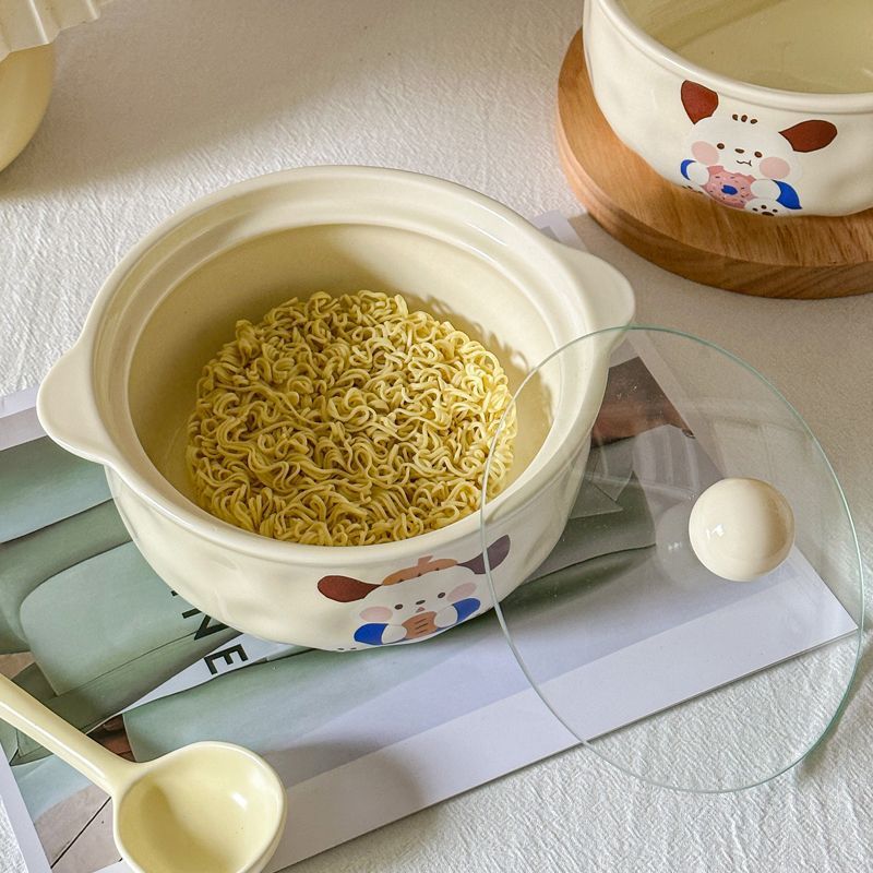 可爱帕恰狗陶瓷泡面碗双耳汤碗带盖学生方便面碗宿舍螺蛳粉碗
