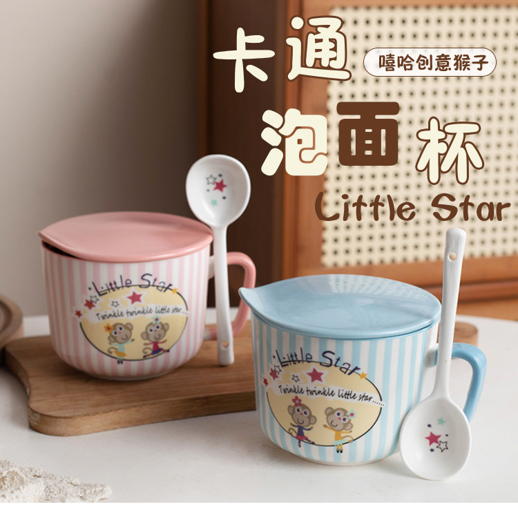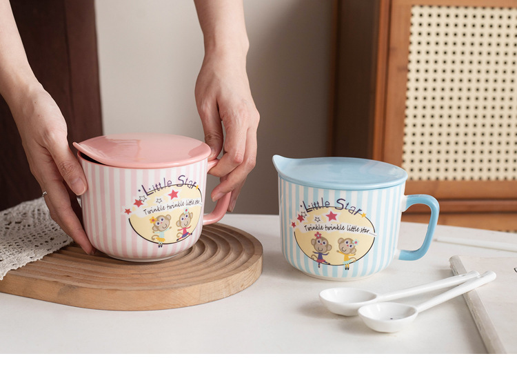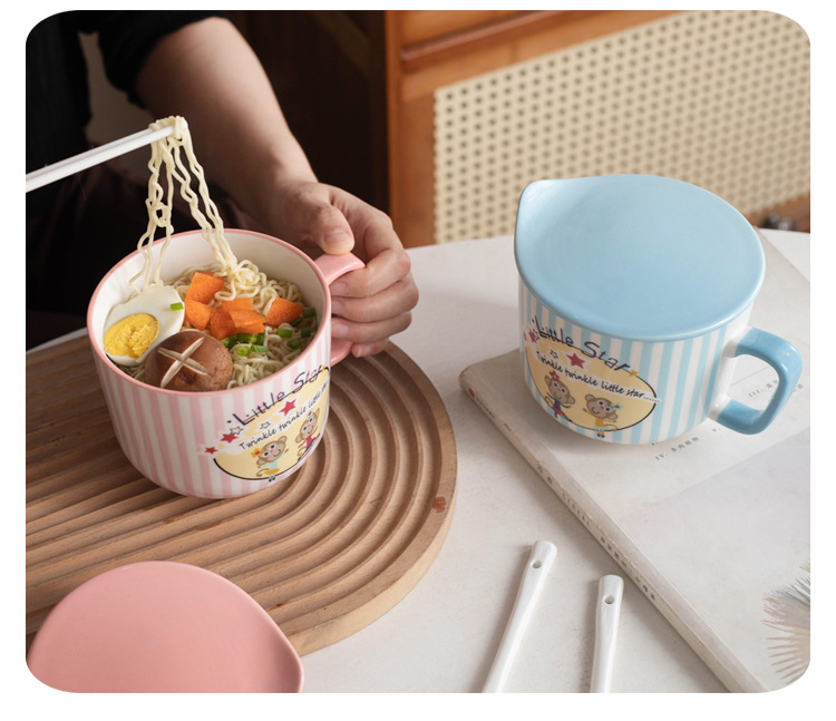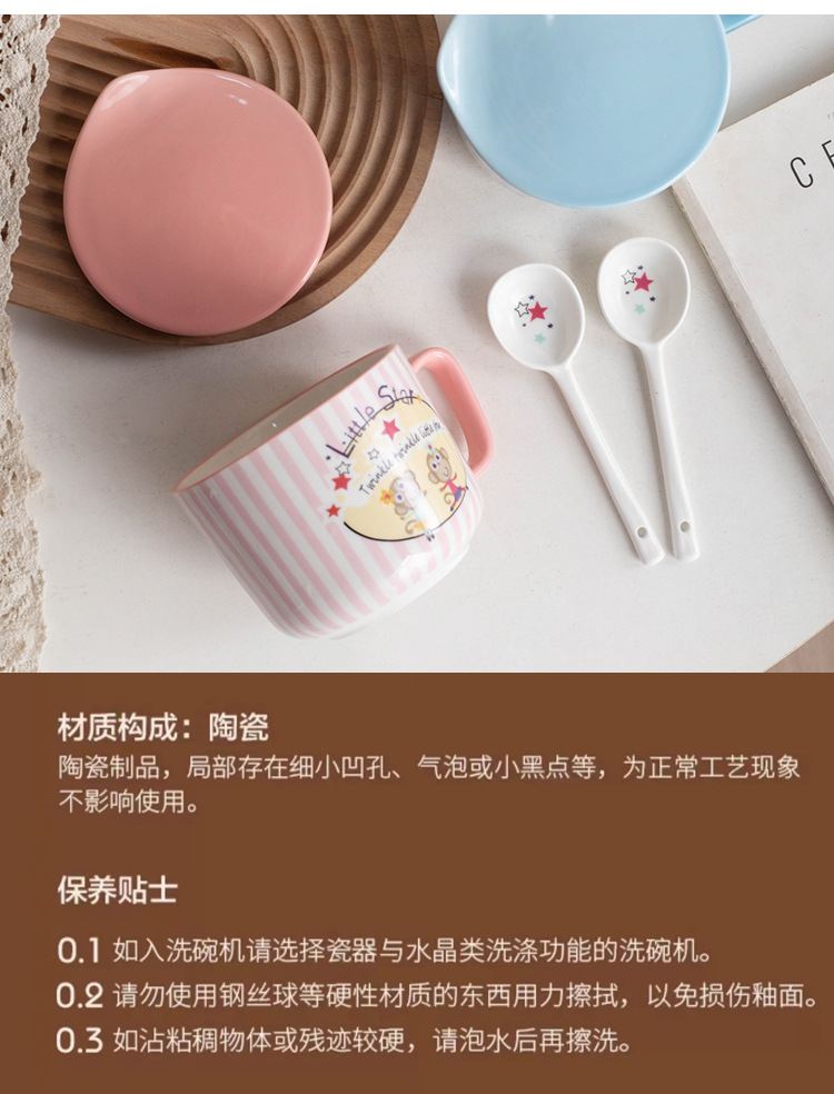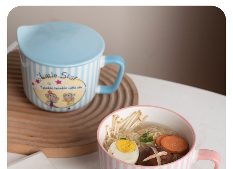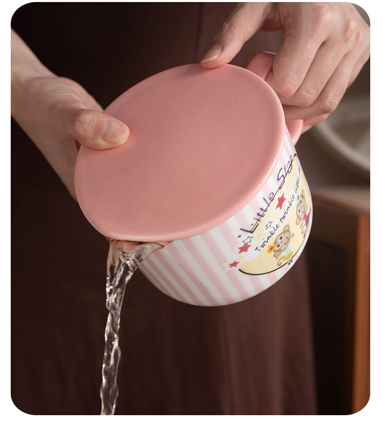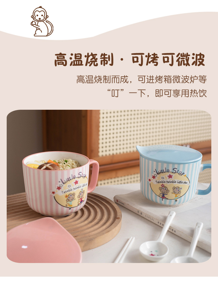 陶瓷保鲜碗带盖密封便当碗可微波可爱卡通泡面碗水果碗高颜值