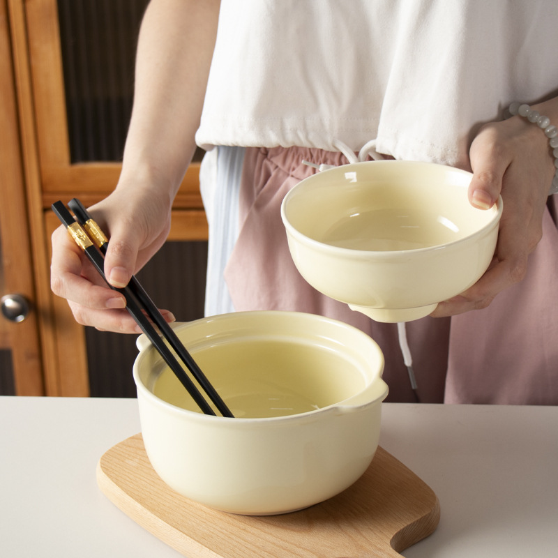奶油餐具带盖面碗汤碗学生宿舍泡面碗氛围感