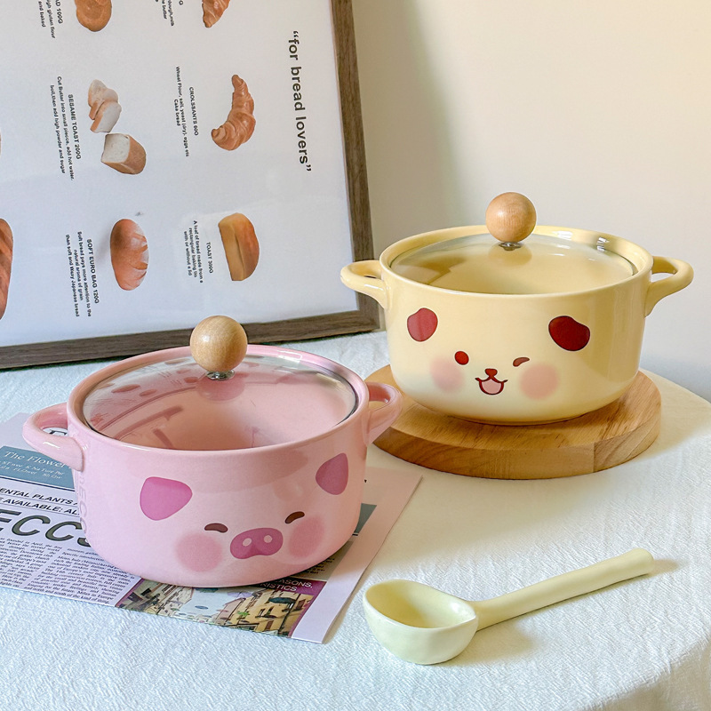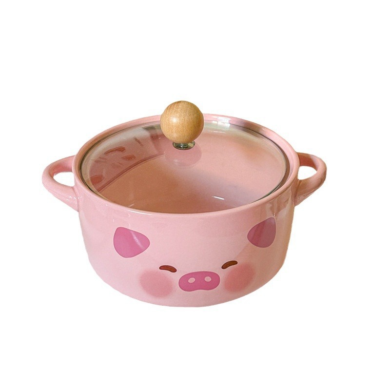 双耳面碗-粉色猪猪(带盖)+专属勺