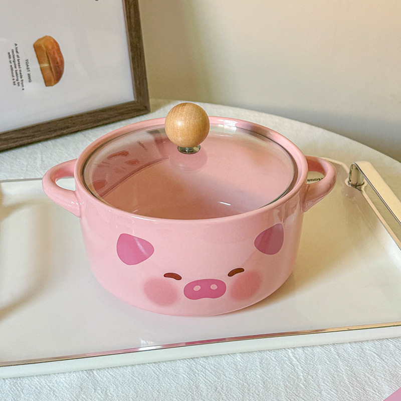 @双耳面碗-粉色猪猪(带盖)