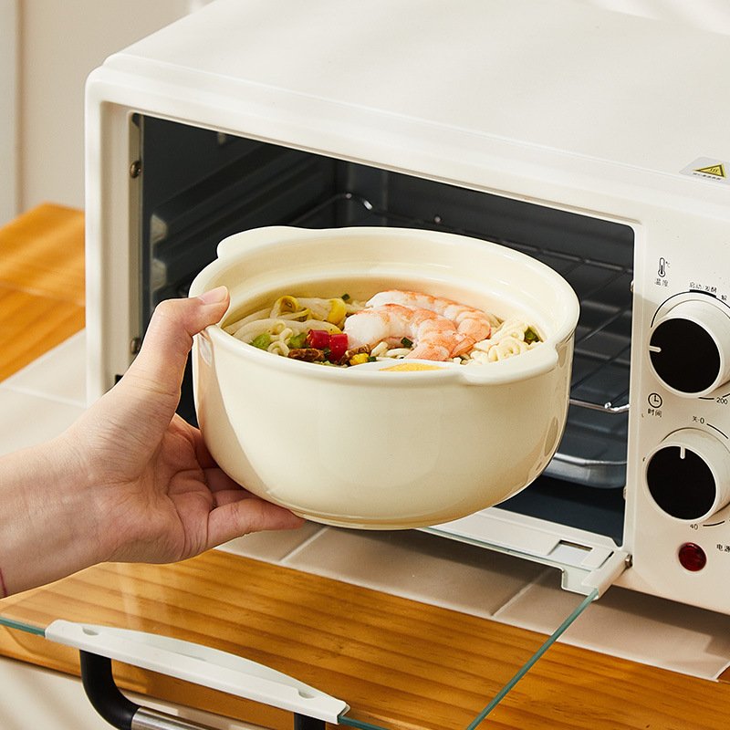 可爱卡通泡面碗带盖双耳陶瓷大容量汤碗学生党宿舍家用早餐碗