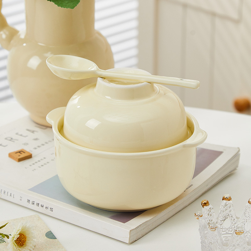 圆形风泡面陶瓷碗带盖学生宿舍用酸奶可爱餐具碗具汤碗套装