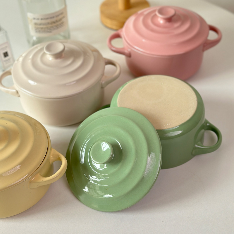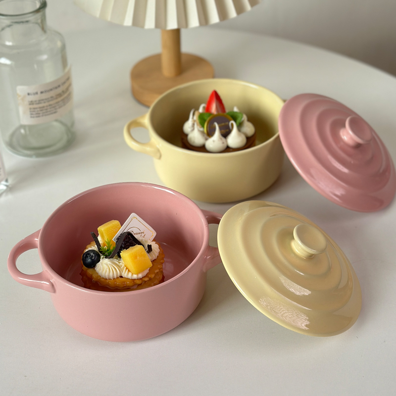 陶瓷带盖双耳甜品碗学生宿舍用泡面碗家用