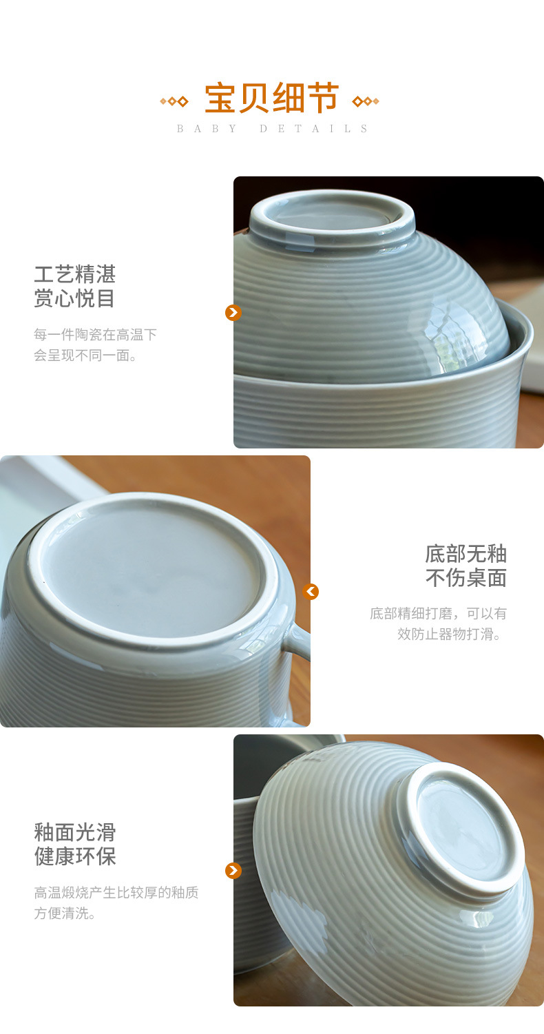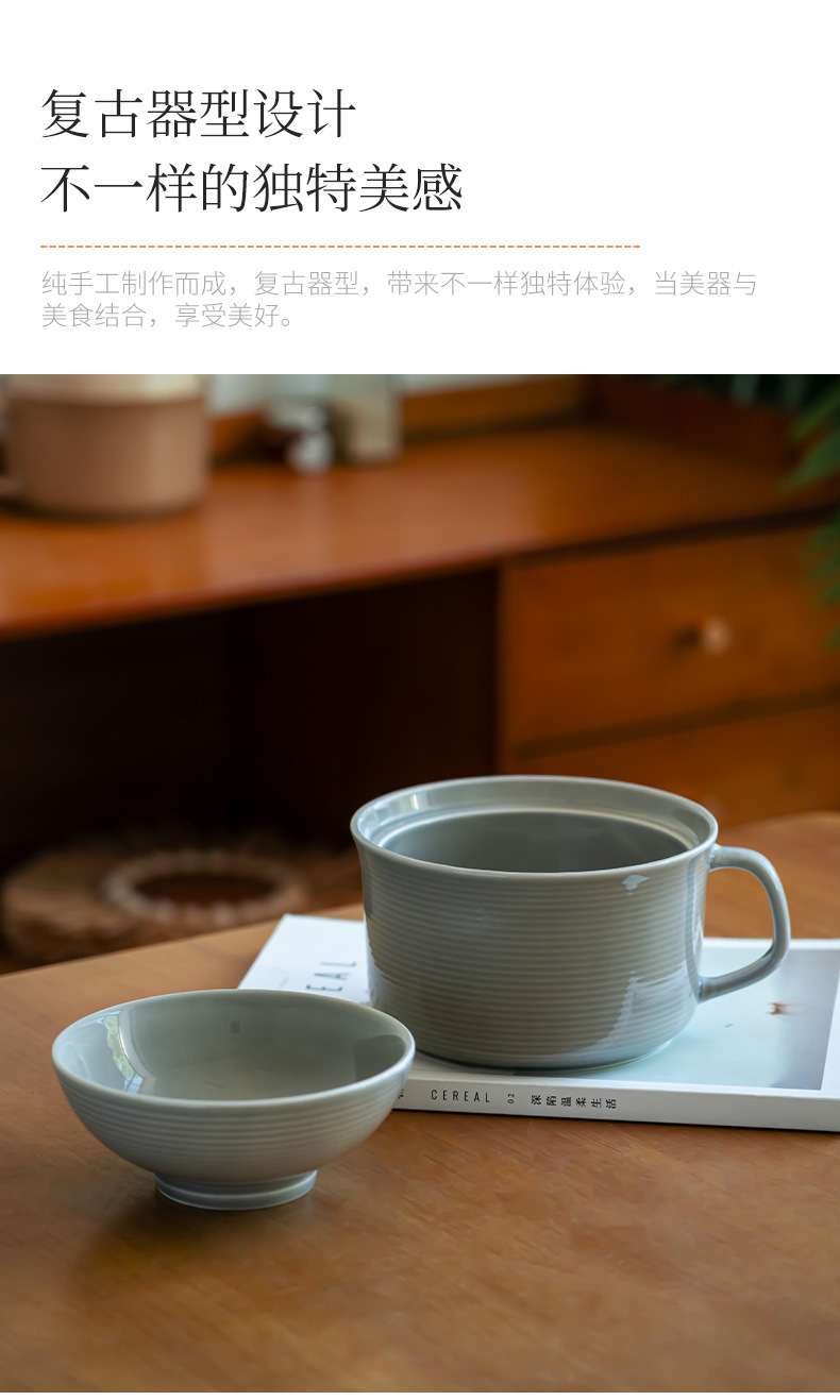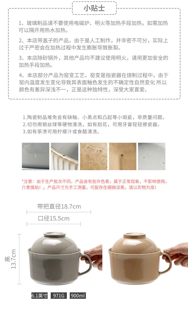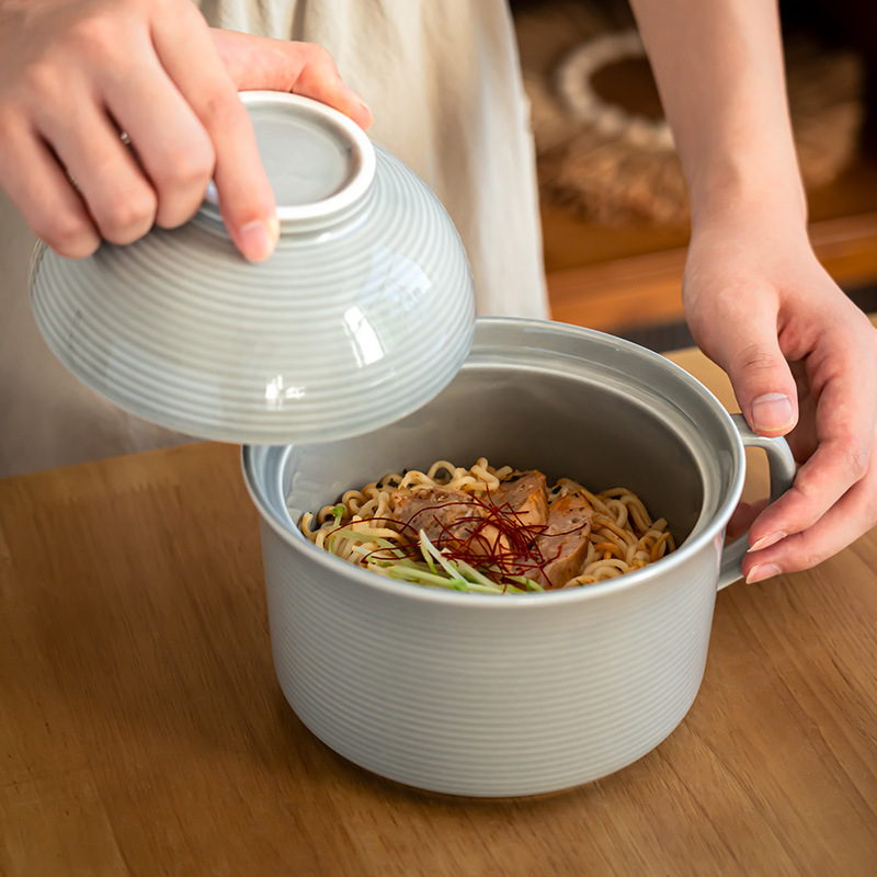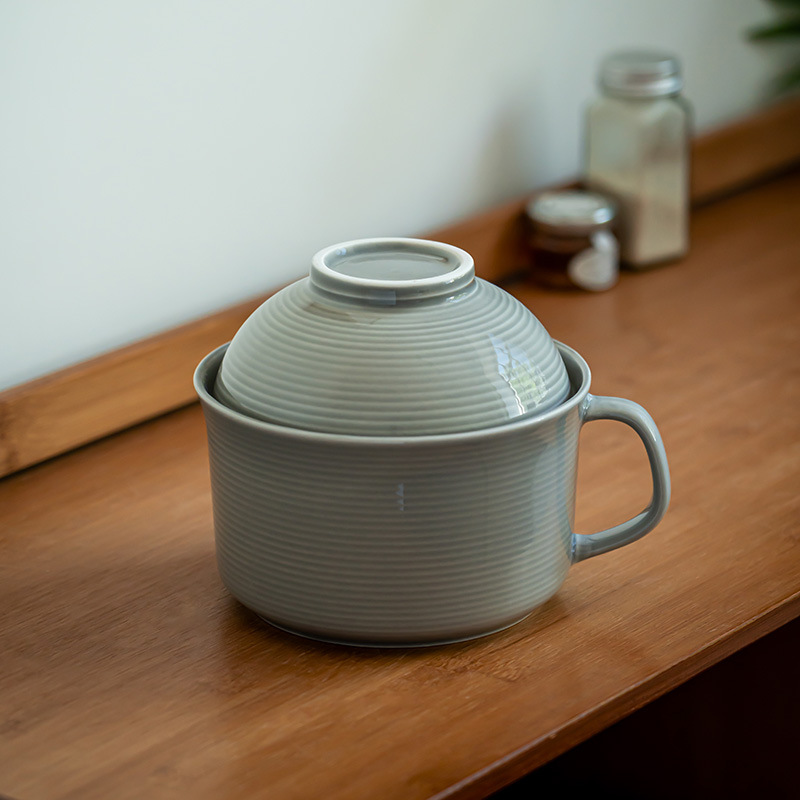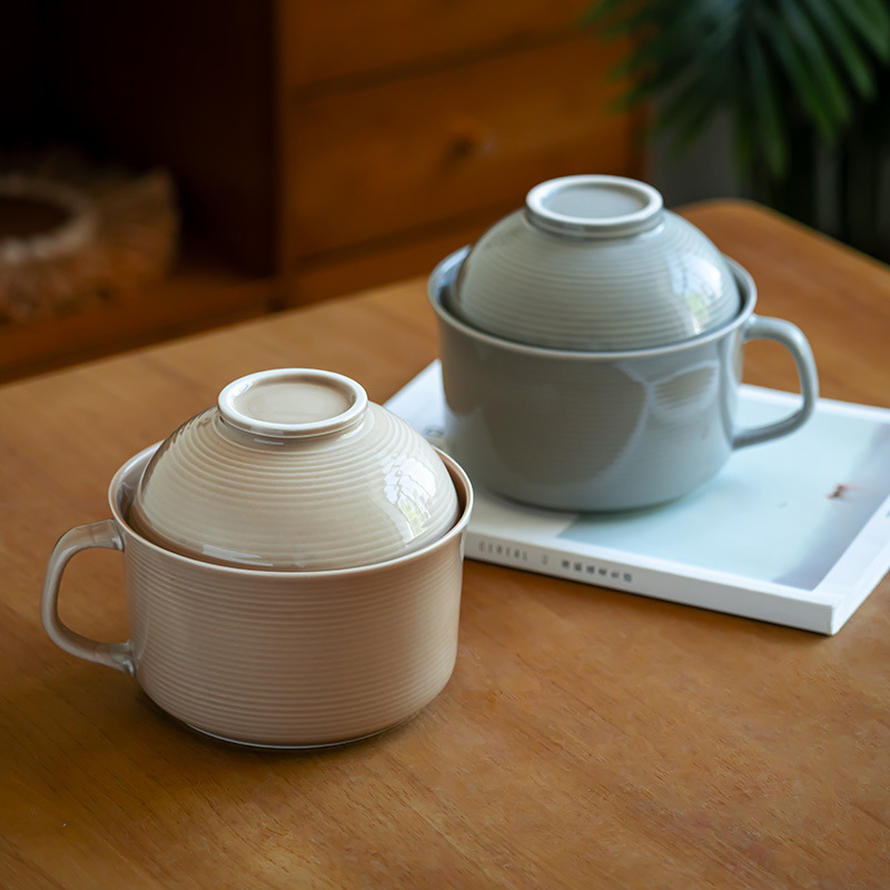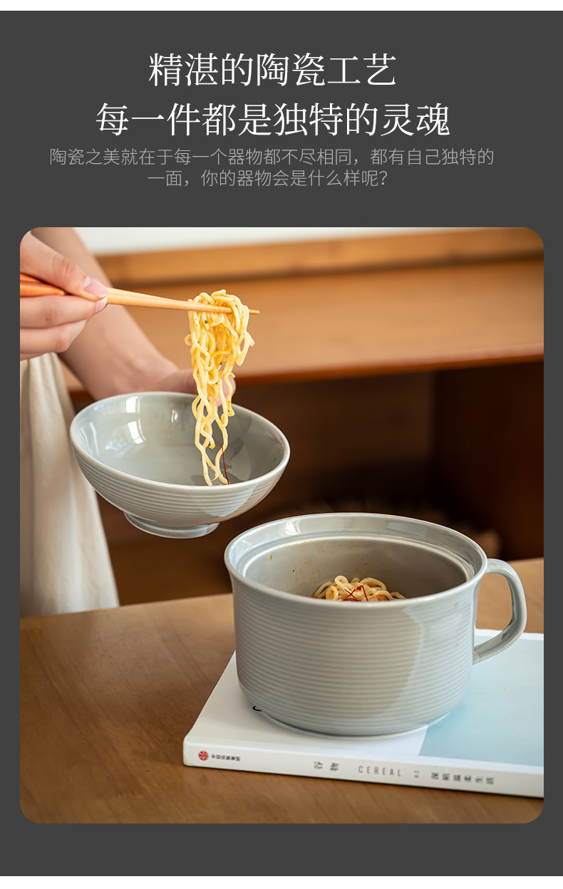 带盖陶瓷泡面碗食堂带手柄打饭碗宿舍学生方便面碗家用餐具汤碗