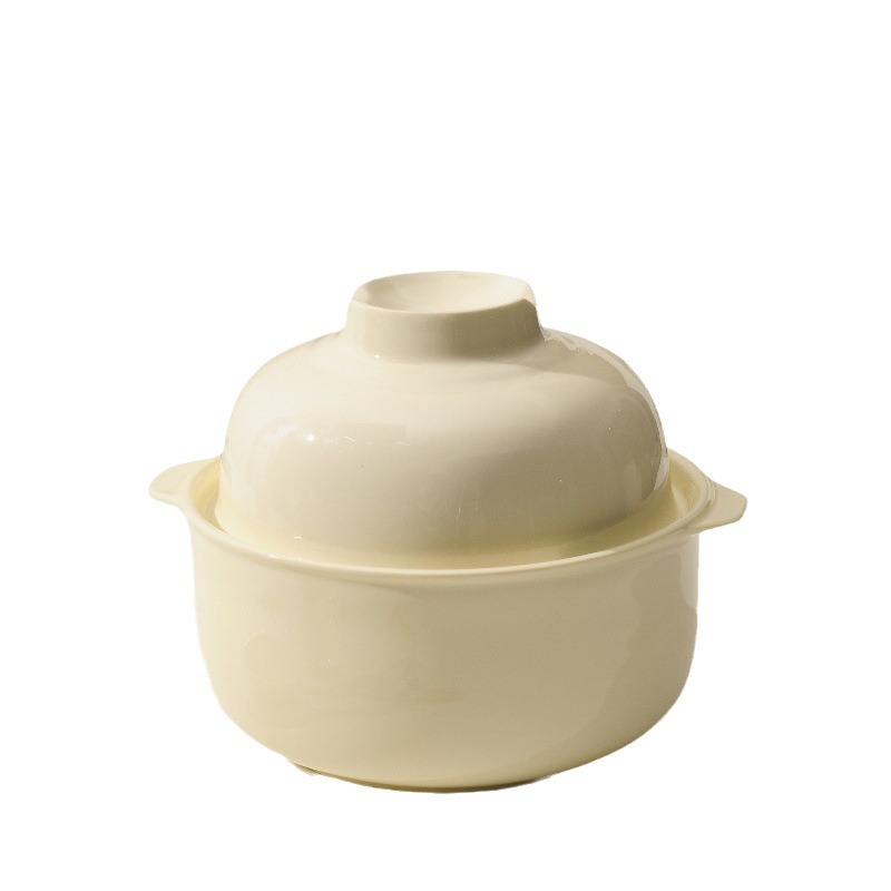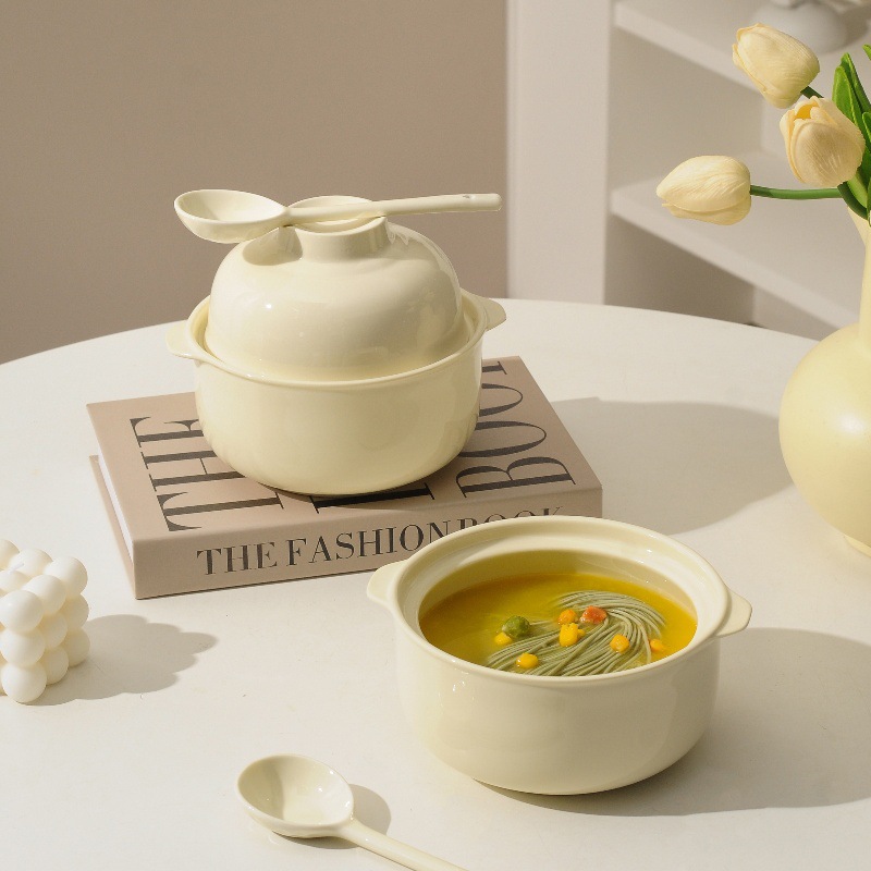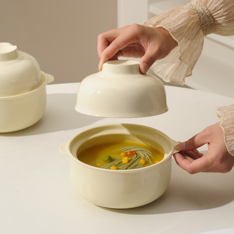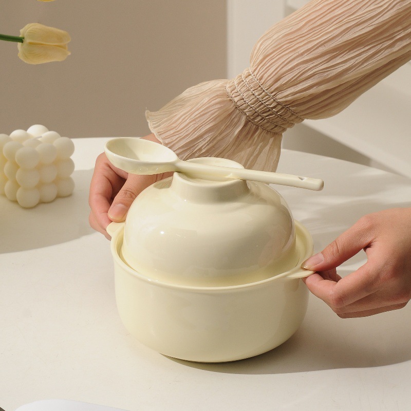 奶油陶瓷泡面碗带盖汤碗家用可微波餐具学生宿舍高温饭盒