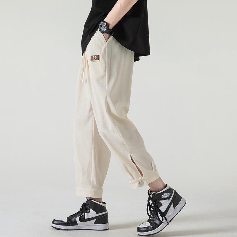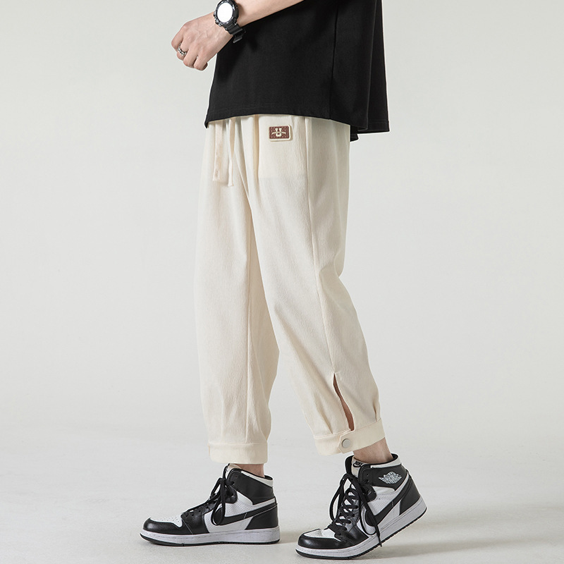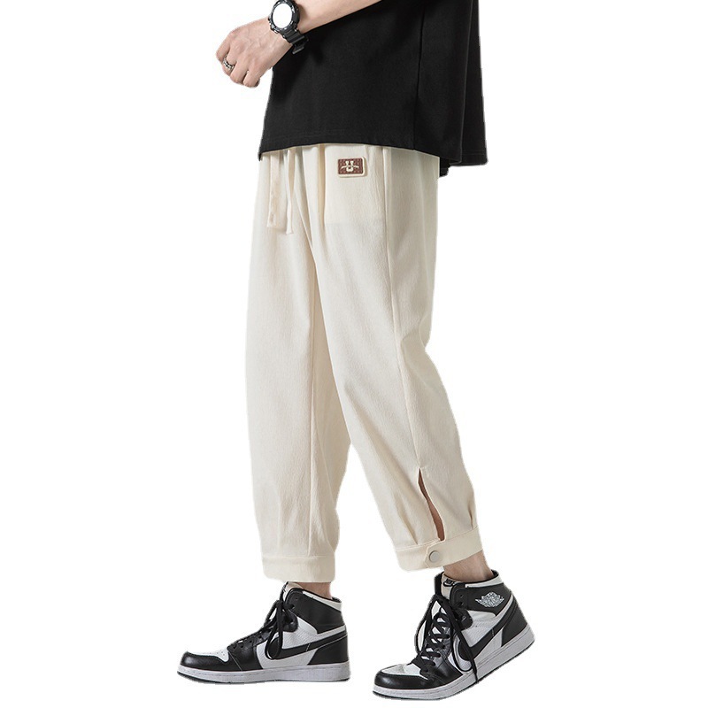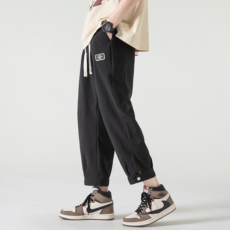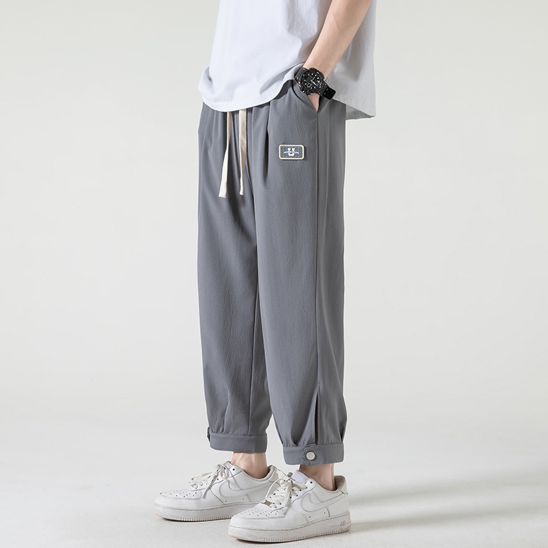夏季新款冰丝长裤子男生痞帅运动春秋宽松潮流牌男士九分休闲卫裤