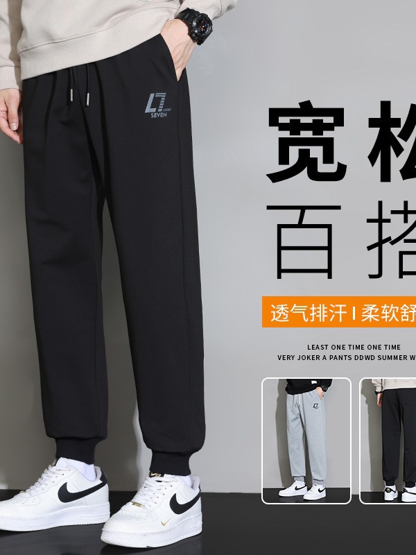 春夏季潮流帅气运动裤男款美式宽松束脚休闲裤男生九分长裤子