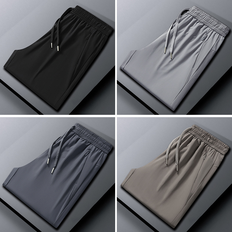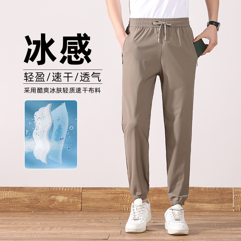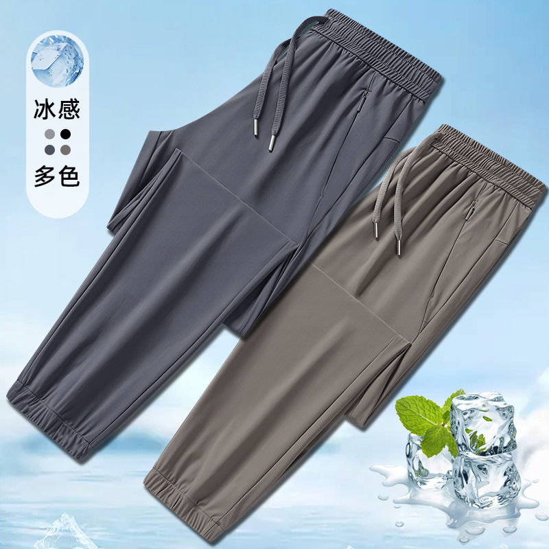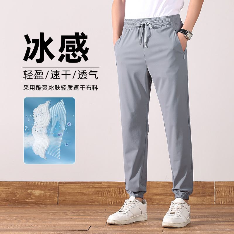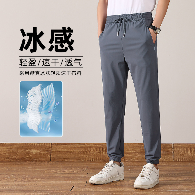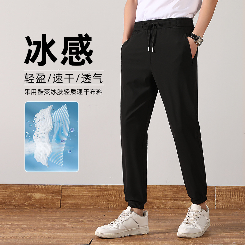 裤子男士夏季阔腿裤宽松束脚运动冰丝裤男生休闲长裤新款男裤